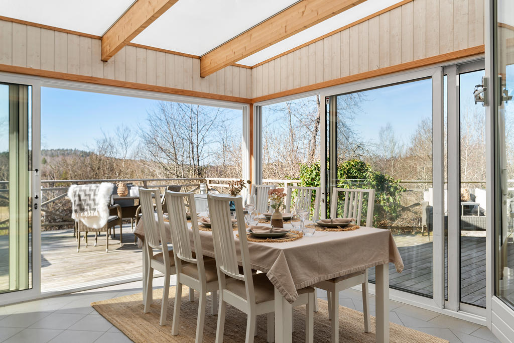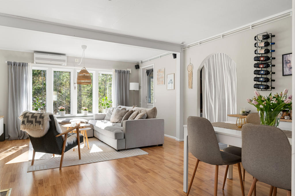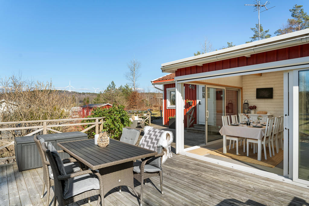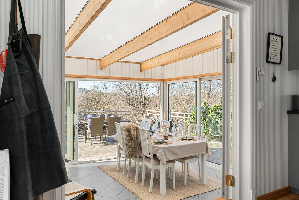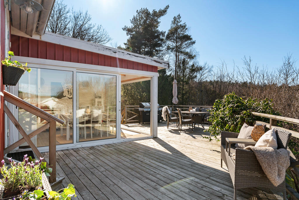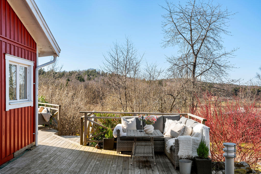 Säljaren berättar: "Bostaden har enligt oss många små guldkorn. Vår favoritplats är altanen, där sommarsolen värmer fram till sina sista minuter på dagen. Det har blivit många fina sommarkvällar med mysiga middagar och stilla stunder när man bara njuter av lugnet. Uterummet har bidragit med att förlänga sommaren, det är lika härligt att sitta där under de första soliga vårdagarna som under krispiga höstkvällar. Inte nog med det så finns det även möjlighet att låta det vara uppvärmt under vintern, minst lika mysigt att sitta där en snöig vinterdag!