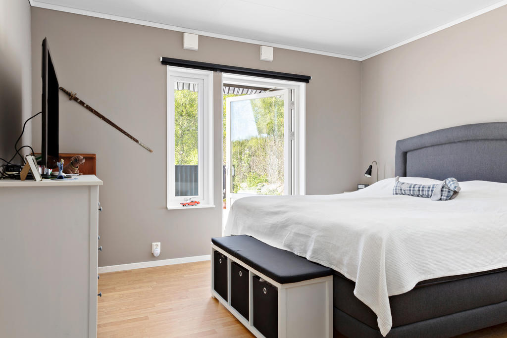 Förslag på planritning där man kan skapa ytterligare ett sovrum på entréplan,