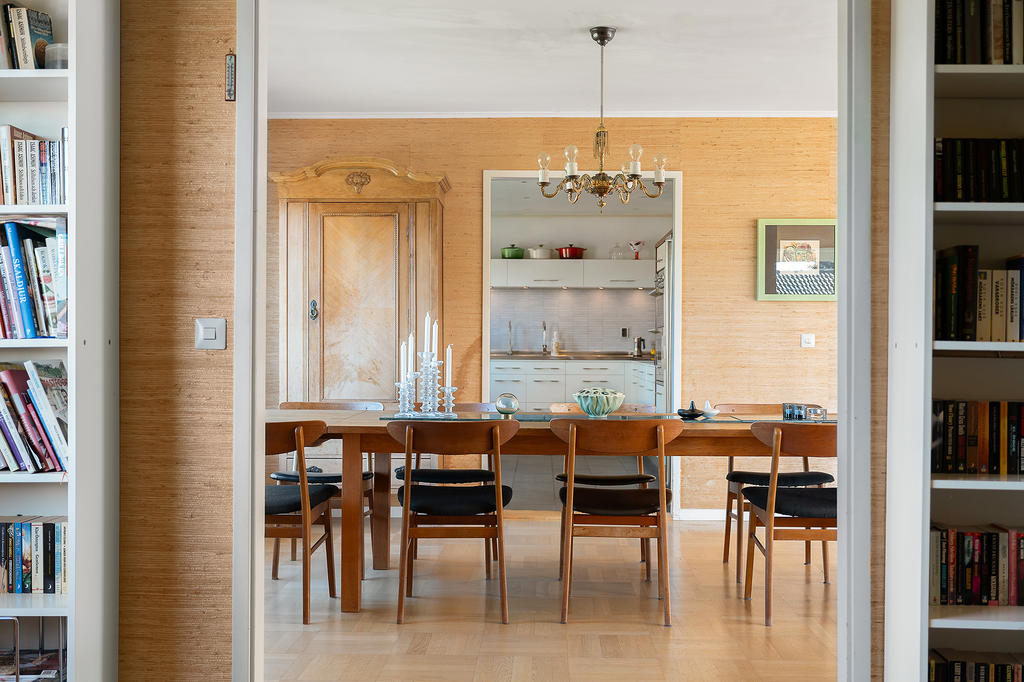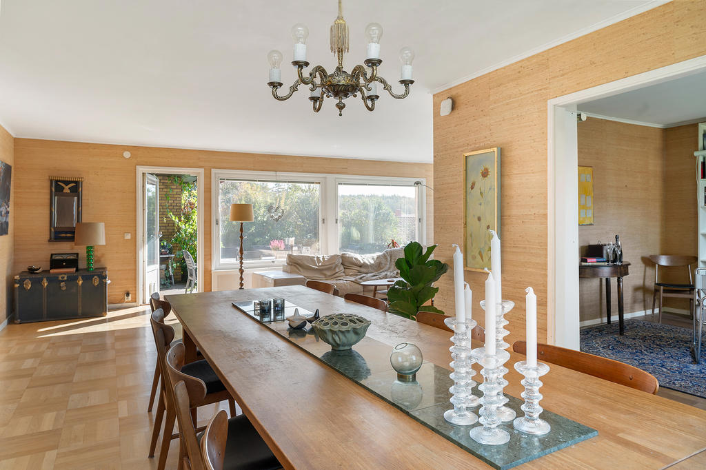 I hela huset samsas välbevarade originaldetaljer som stavparkett och sjögrästapet med generösa ytor som bjuder in till både vardagsliv och fest samtidigt som huset erbjuder hela sex sovrum, vilket gör det möjligt att anpassa hemmet efter familjens behov – oavsett om ni önskar många sovrum, arbetsrum eller plats för gäster. Här finns plats för livet att hända oavsett familjekonstellation.