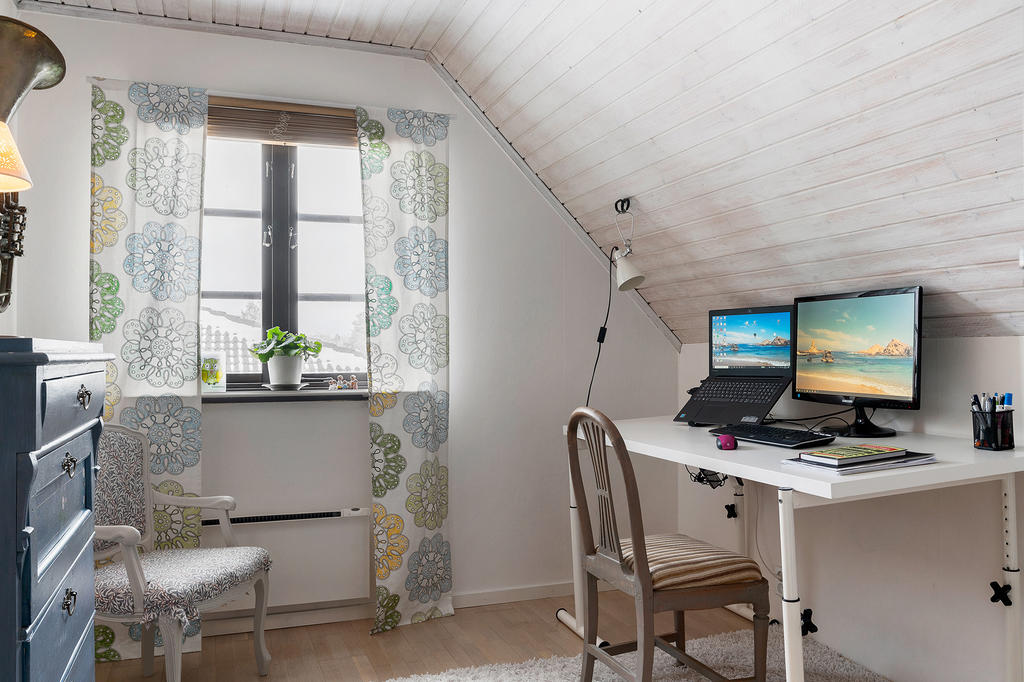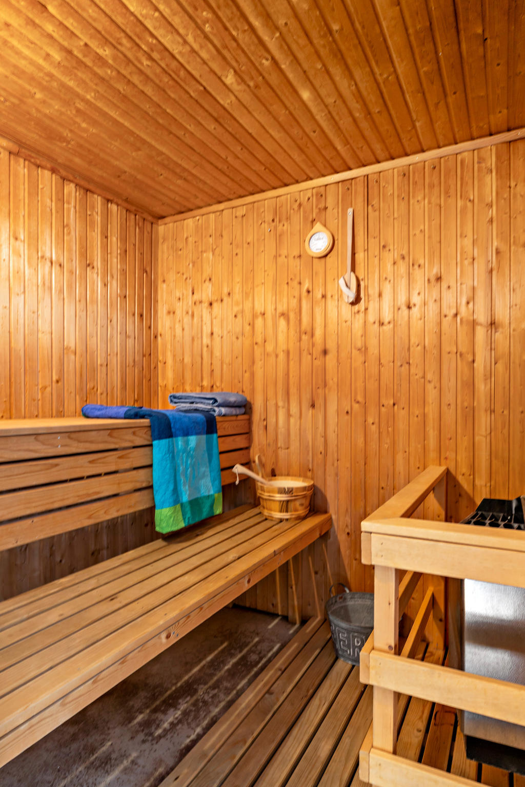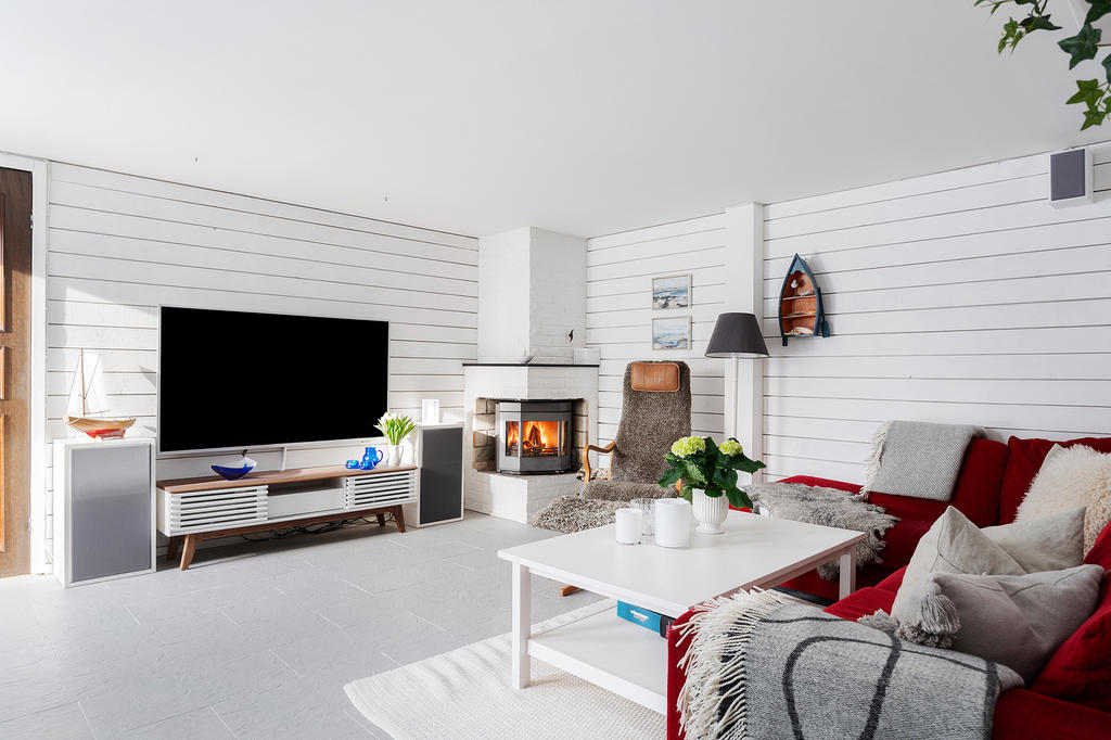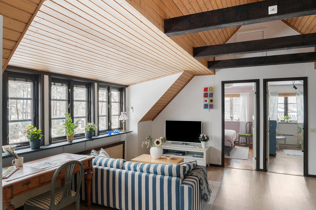 Invändigt möts ni av ljus, rymd och genomgående väl tilltagna ytor. Vardagsentrén vid uppfarten har ett praktiskt klinkergolv med värmeslingor, flera garderober och en praktisk klädkammare bakom skjutdörrar med spegelglas, här finns plats för familjens alla ytterkläder och skor oavsett säsong. I denna del av huset finns ett trivsamt allrum som stoltserar med en vacker braskamin som ger både behaglig värme och stor mysfaktor. Från rummet blickar ni ut över poolområdet och de grönskande omgivningarna. Intill allrummet finns en stor tvättstuga med tvättmaskin, torktumlare, vask och gott om förvaringsmöjligheter och arbetsytor. Dessutom finns bra med plats att hänga tvätten på tork utan att den är i vägen för vardagslivet. I anslutning till tvättstugan finns en dusch, en separat wc samt en fin bastu. Perfekt är att man genom pardörrarna i tvättstugan kommer rakt ut till altanen och poolen, så dusch, wc och bastun är lättillgänglig.