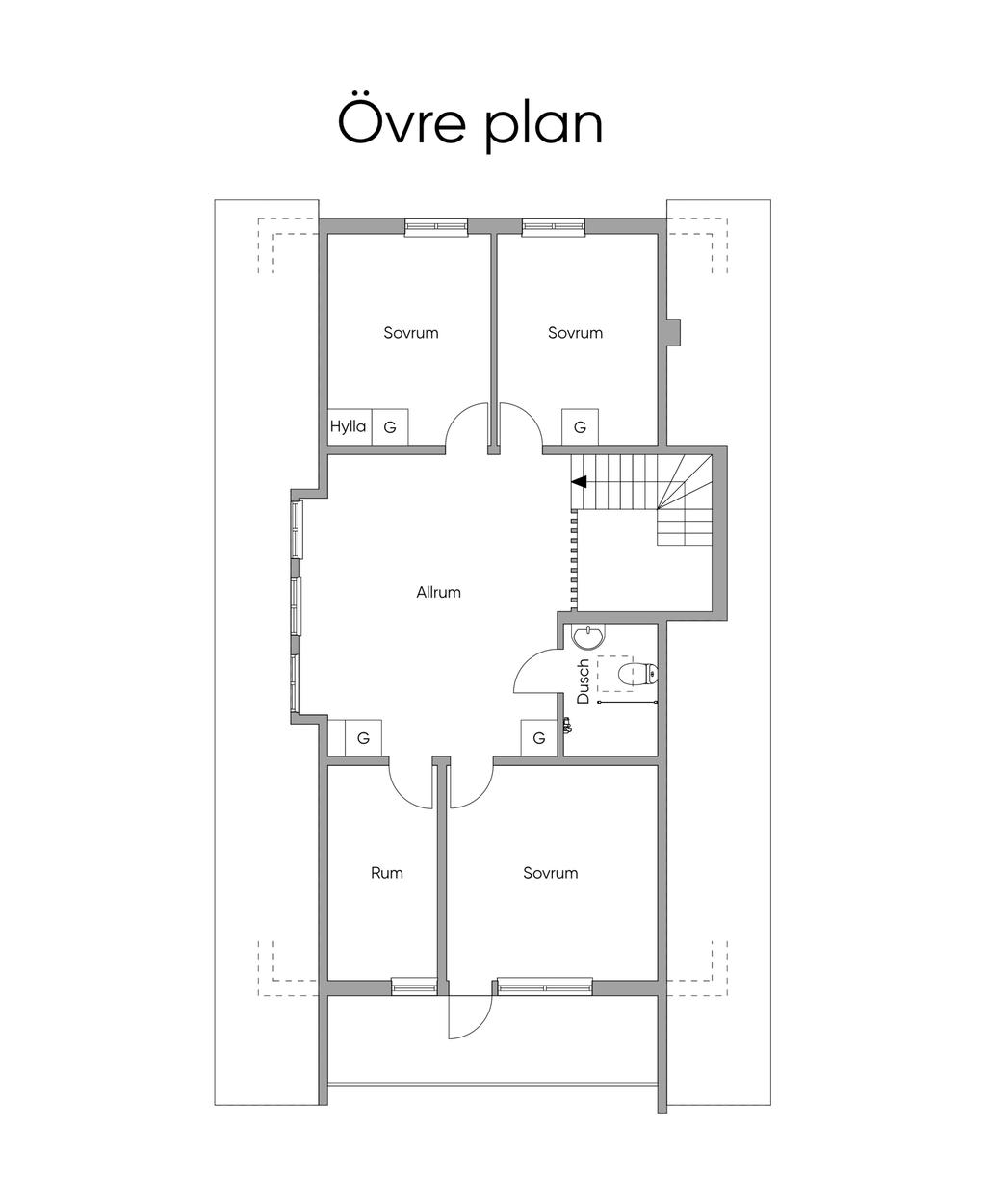 På övervåningen finns fyra sovrum samt ett rymligt allrum som binder samman sovrummen, perfekt för familjelivet, gäster eller för hemmakontor och hobbys. Tre av sovrummen är stora nog att rymma dubbelsängar.