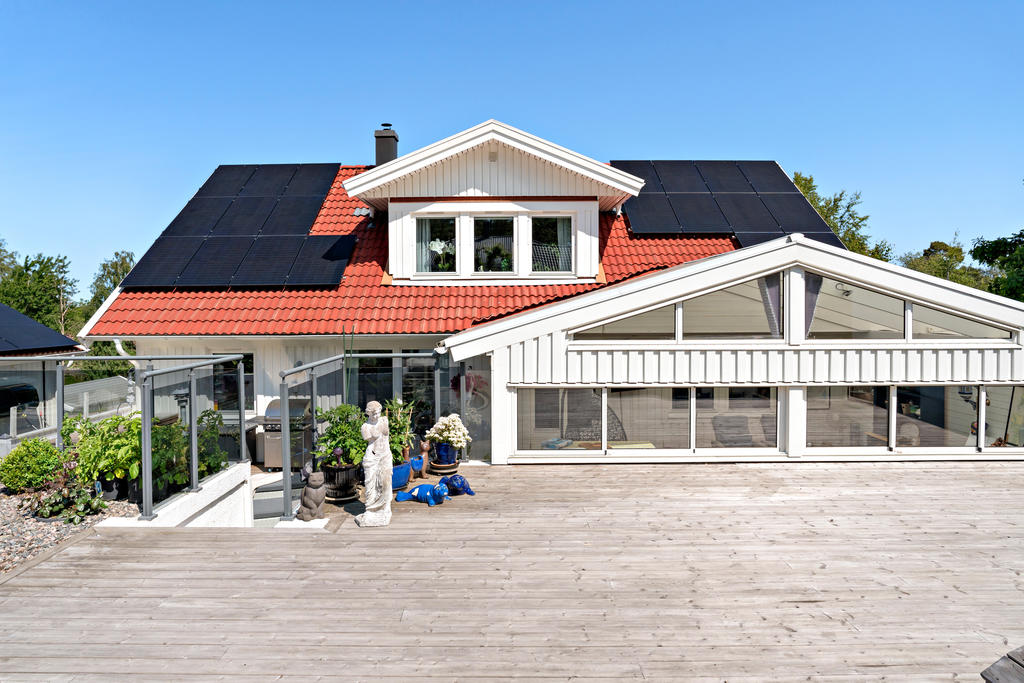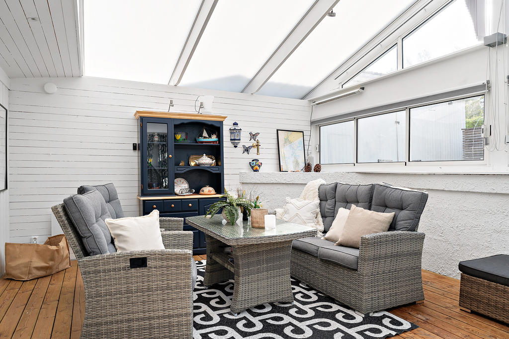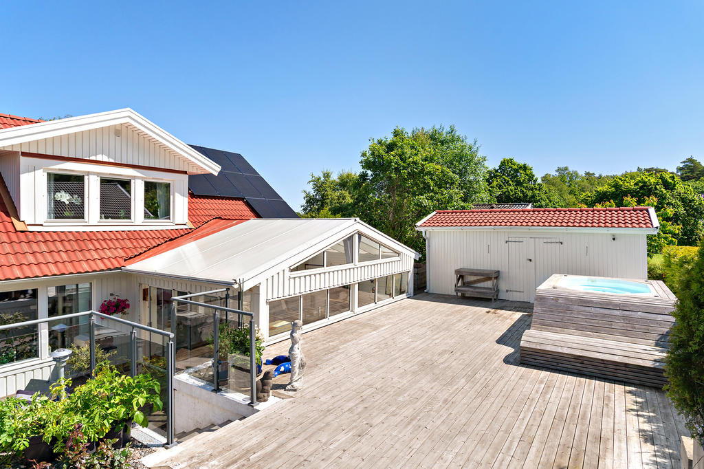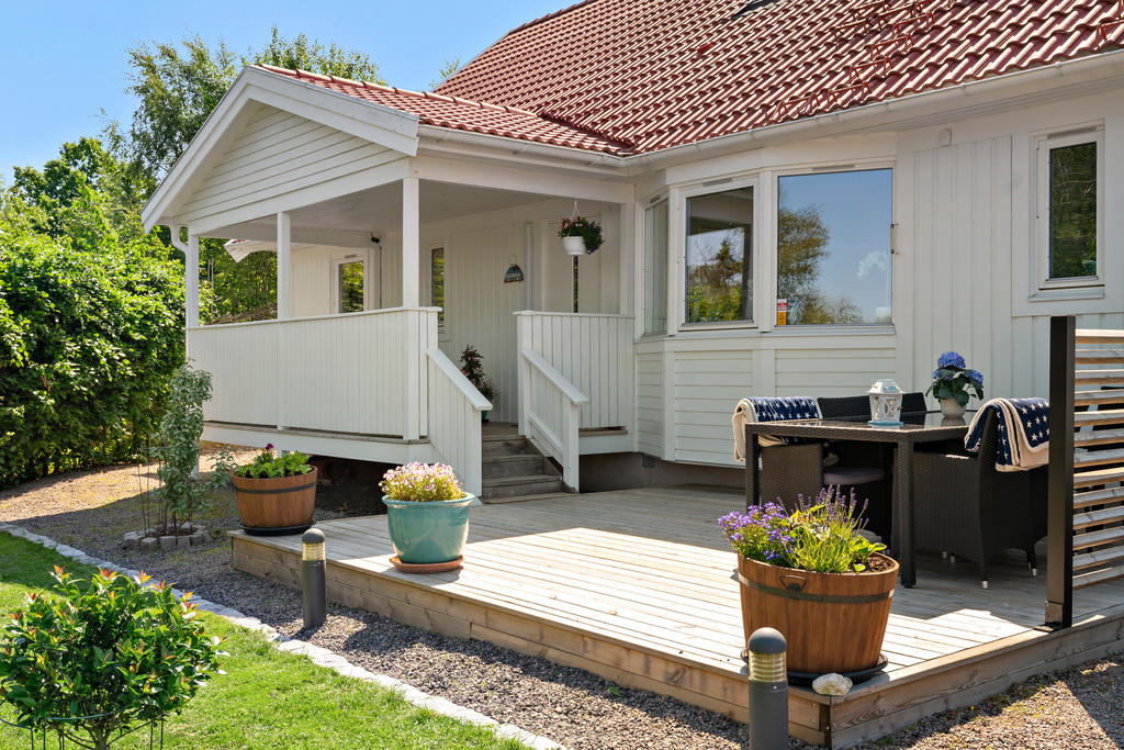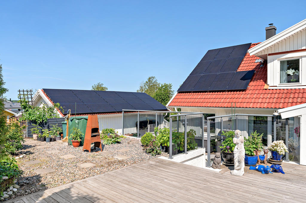 När du svänger in på uppfarten möts du av ett inbjudande första intryck. Här finns plats för flera bilar, ett praktiskt garage och en omsorgsfullt utformad tomt där varje hörn har sin egen funktion och charm. Flera uteplatser låter dig följa solen hela dagen – från den första kaffekoppen i morgonsolen till ljumma kvällar under stjärnorna.