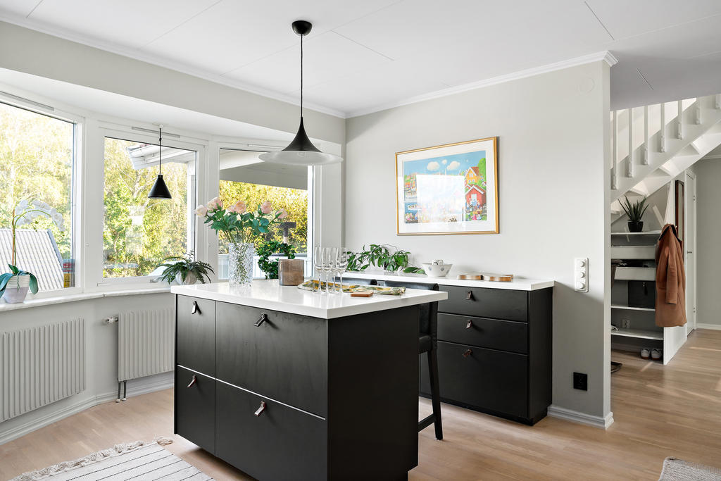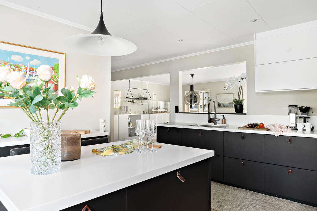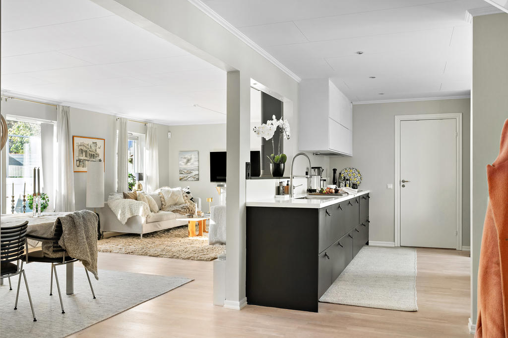 Välkommen in! Redan i hallen infinner sig känslan av hemtrevnad och ljus. Den öppna planlösningen mellan kök och vardagsrum skapar ett naturligt flöde och en självklar plats för både vardagens lugn och festens liv och rörelse.