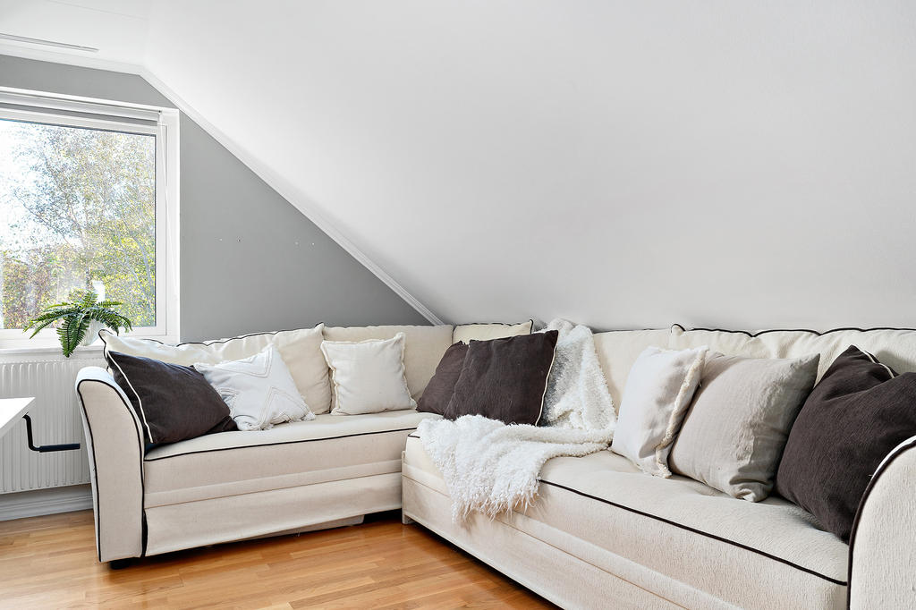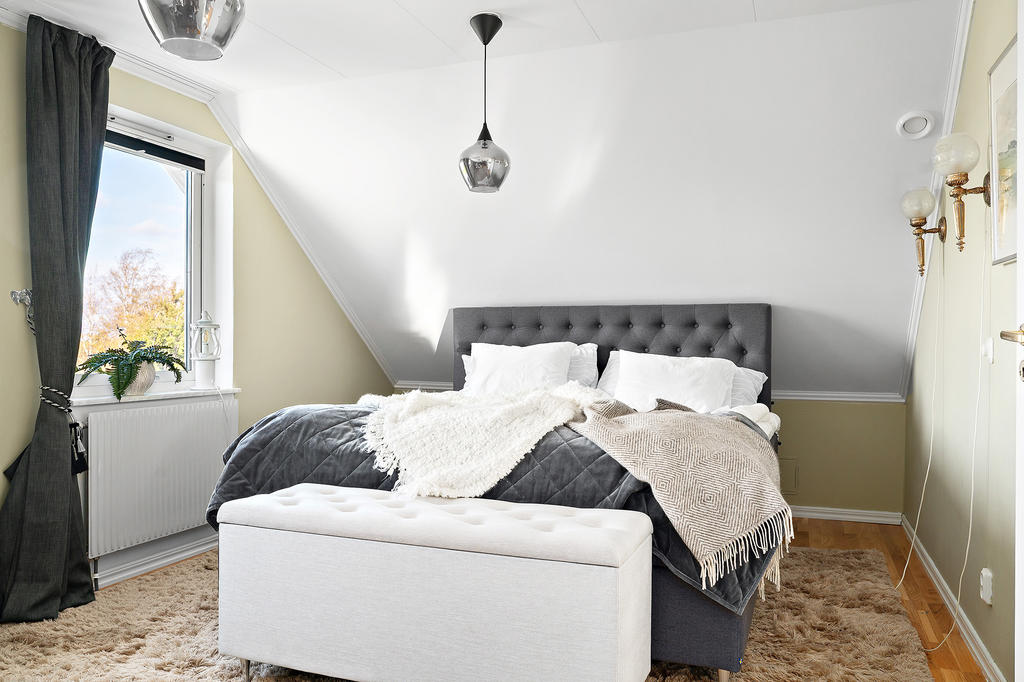 En trappa upp öppnar sig ett luftigt allrum – perfekt för filmkvällar, lek eller en stunds stillhet. Härifrån nås tre rofyllda sovrum, alla med sin egen personlighet. Master bedroom är generöst tilltaget och kan vid behov delas av för att skapa ytterligare ett rum. På detta plan finns även ett stilrent badrum med både dusch och badkar – en plats för avkoppling och återhämtning efter en lång dag.