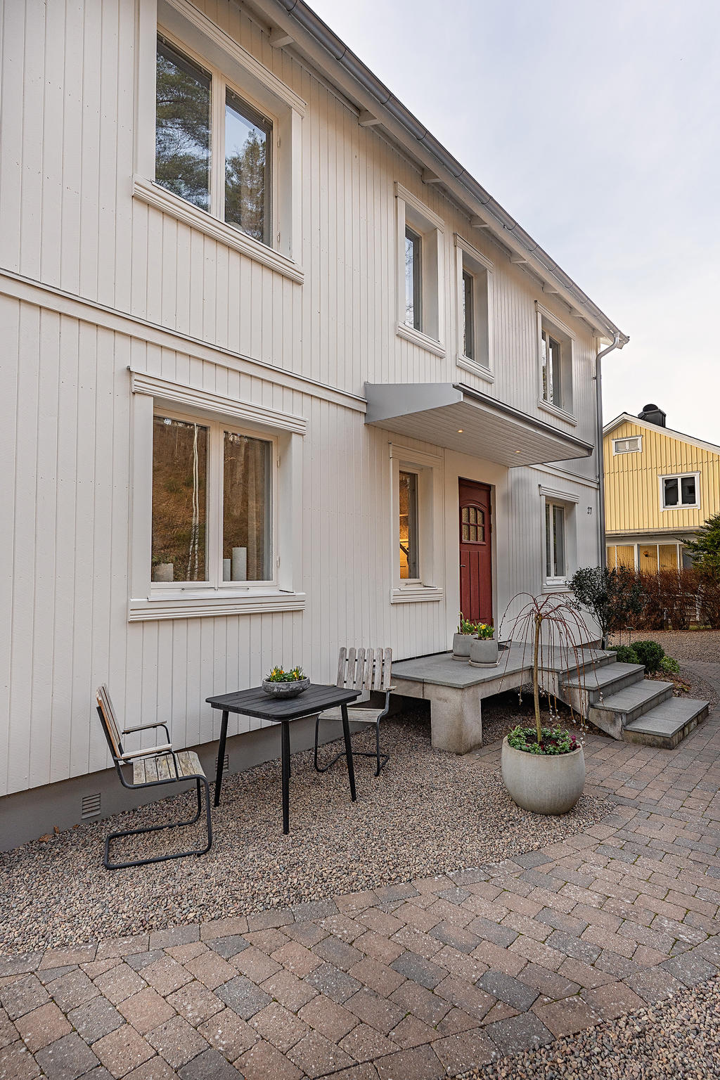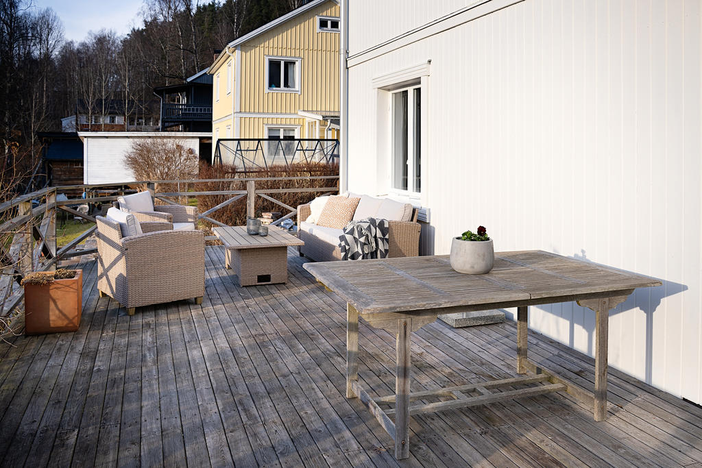 På baksidan väntar en solig altan som blir en naturlig samlingsplats under sommarhalvåret – en perfekt plats för långa middagar och umgänge med nära och kära.