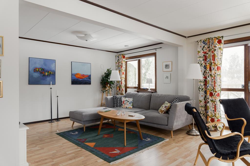 Välplanerad suterrängvilla med hörntomt och naturnära läge i Bor