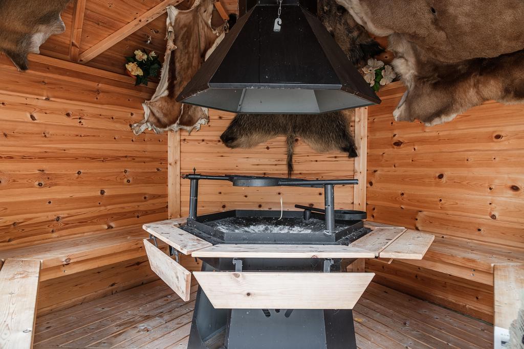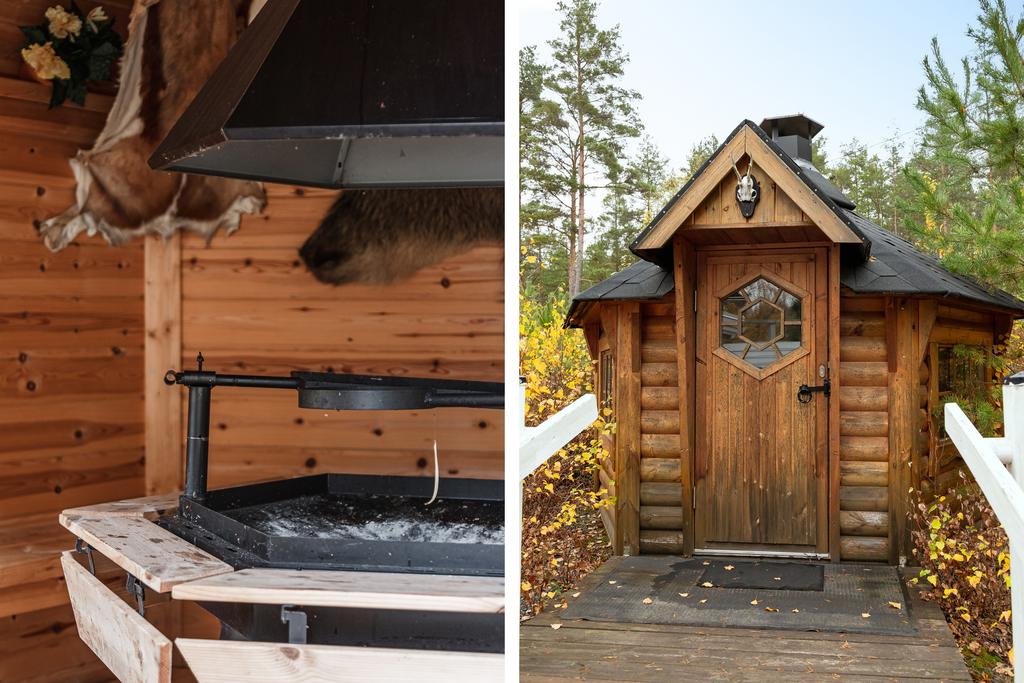 Lite längre in på tomten väntar något alldeles särskilt. En vacker grillkåta, byggd för gemenskap, stillhet och eldens sprakande värme. Här kan ni samlas året runt. Grilla, berätta historier, lyssna på tystnaden och kanske har man tur att få se norrskenet dansa över sjön en klar vinternatt.