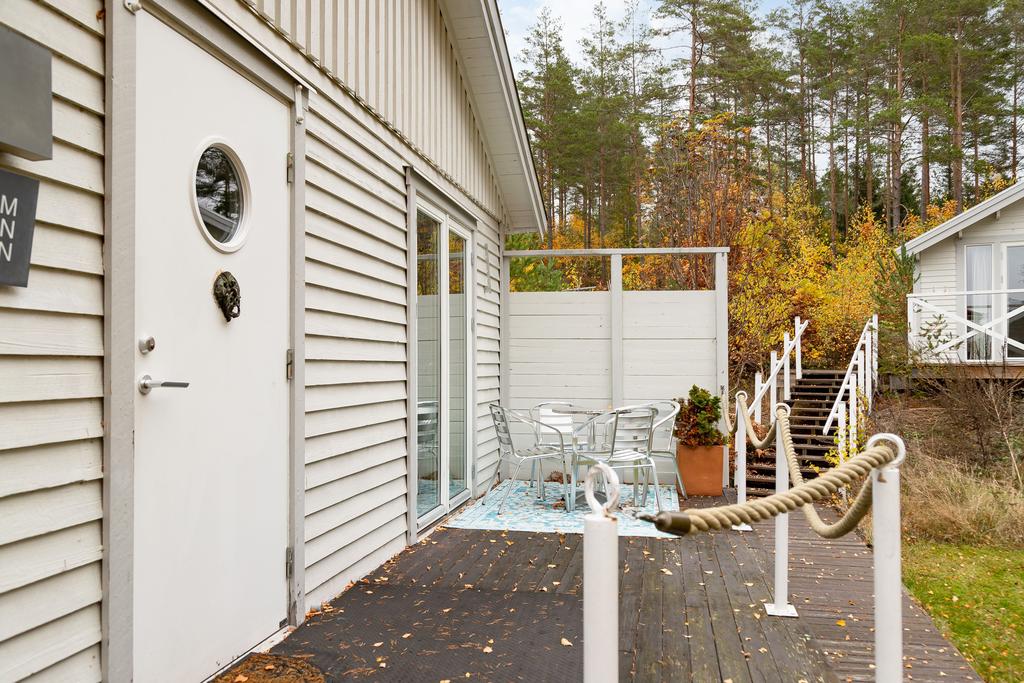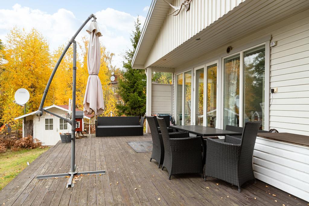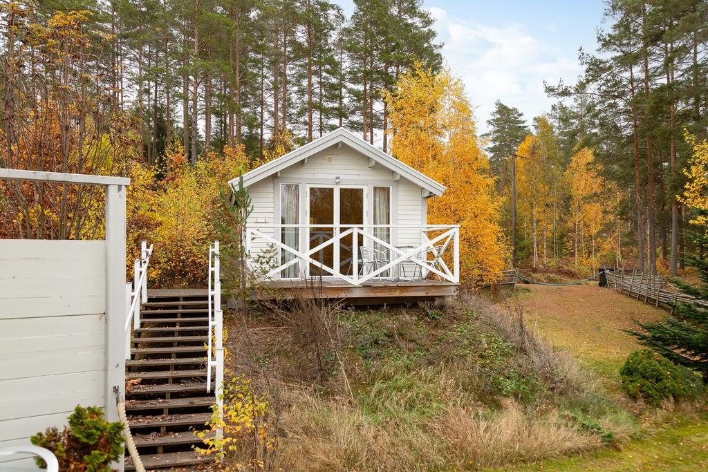 Ett stycke orörd natur där den ståtliga björken vakar över bostaden och där vinden bär med sig doften av skog och sjö. Den stora gröna gräsmattan breder sig ned mot vattnet och träd som skapar skuggspel tills du når stranden. Där väntar den egna bryggan. En plats för svalkande dopp, lugna stunder och barnens skratt i sommarens glittrande vatten. Efter ett uppfriskande dopp i sjön väntar den sprakande veden och den mjuka värmen ifrån den vedeldade bastun. En upplevelse för alla sinnen. Den stora altanen vid bostadshuset är skapad för kvällar som aldrig tar slut. Här klingar glas, här skrattas det långt in på natten medan månen och den stjärnklara himlen speglar sig i sjön. Här får du det bästa av två världar. Naturens stillhet och bastuns värmande energi. Uppe på höjden väntar gäststugan. Perfekt för övernattande gäster eller för tonåringen som längtar efter sitt eget lilla universum.