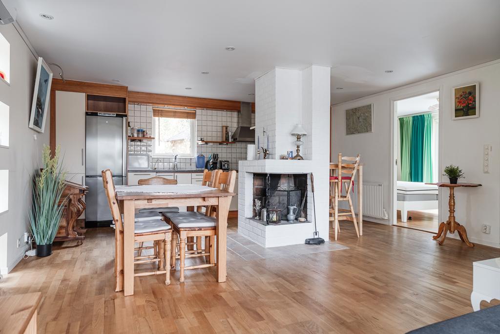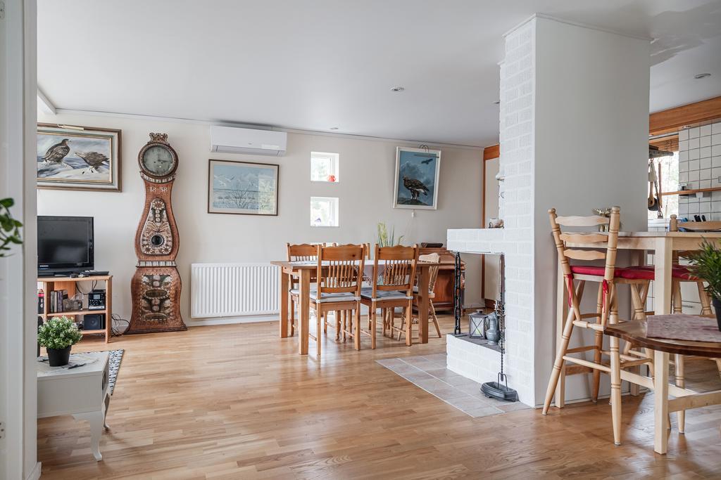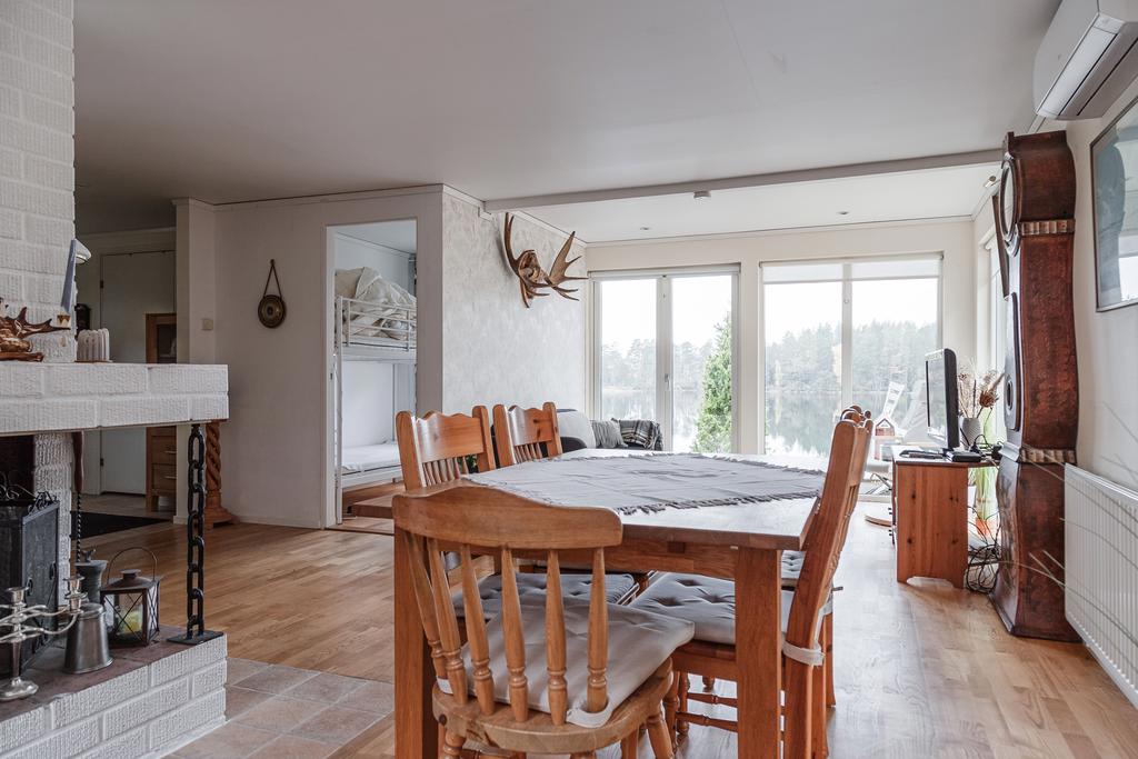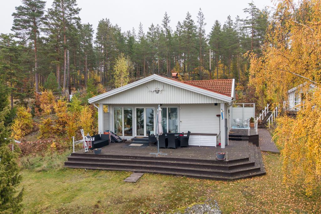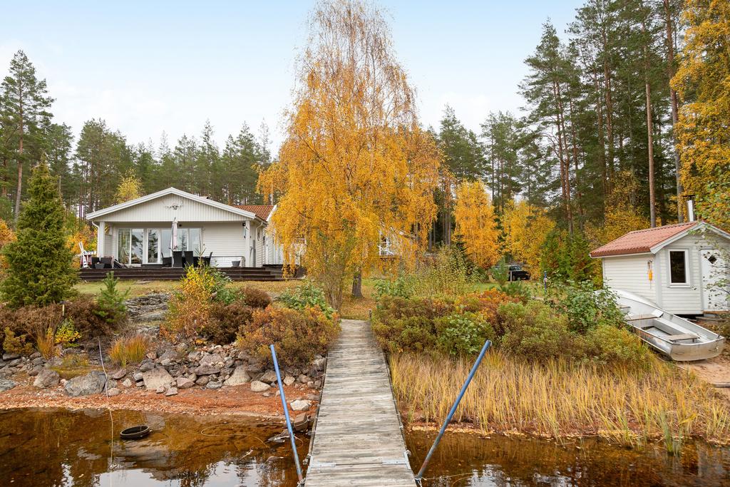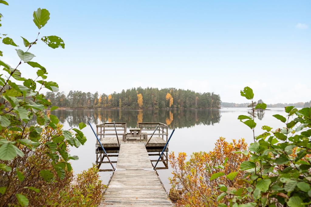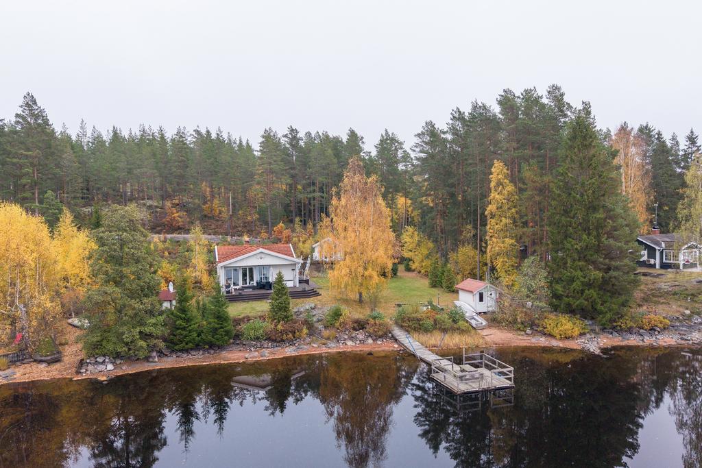 Välkommen till en plats där tiden tycks sakta in. Där barndomsminnen får nya rötter och där varje dag bär löftet om stillhet, skratt och frihet. Här med bästa läget vid den glittrande sjön möts du av en värld där naturen talar i vindens viskningar och vågornas mjuka rytm slår mot stranden. En tidig morgon ligger dimman som ett silkeslent täcke över vattnet. Luften är klar och doften av tall och sommar ligger kvar från natten. Sjön ligger spegelblank och i det ögonblicket känns allt möjligt. Här på den egna strandtomten med brygga och mjuk sandstrand vilar en vinterbonad villa. Ett hem som bjuder in naturen att bli en självklar del av vardagen. Från nästan varje rum breder sjöutsikten ut sig som ett levande konstverk, föränderligt med årstidernas skiftningar. Isens kristaller, vårens klara vatten, sommarens speglingar och höstens glöd. Allt är din kalender. Inne i huset väntar värmen. Kök, matrum och vardagsrum smälter samman i en harmonisk helhet skapad för samtal, middagar och stilla stunder i ljuset från de stora fönstren. Den öppna spisen står centralt placerad mitt i rummet och skapar rum i rummet. Genom altandörrarna öppnar sig ett stort altandäck som fångar solen från förmiddag till kväll. Utsikten är som en tavla utan ram, där vattnet, ljuset och himlen ständigt målar om motivet. I bostaden finns även två sovrum, en med den fantastiska sjöutsikten och det andra med utgång till egen uteplats. Renoverat badrum med klinkergolv, golvvärme utrustat med dusch, wc, handfat och tvättmaskin.