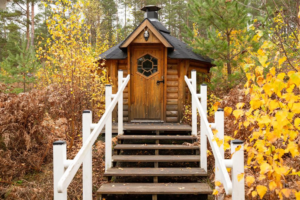 Lite längre in på tomten väntar något alldeles särskilt. En vacker grillkåta, byggd för gemenskap, stillhet och eldens sprakande värme. Här kan ni samlas året runt. Grilla, berätta historier, lyssna på tystnaden och kanske har man tur att få se norrskenet dansa över sjön en klar vinternatt.