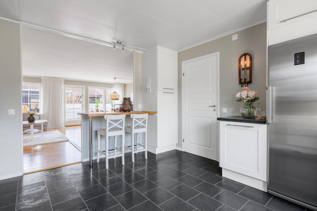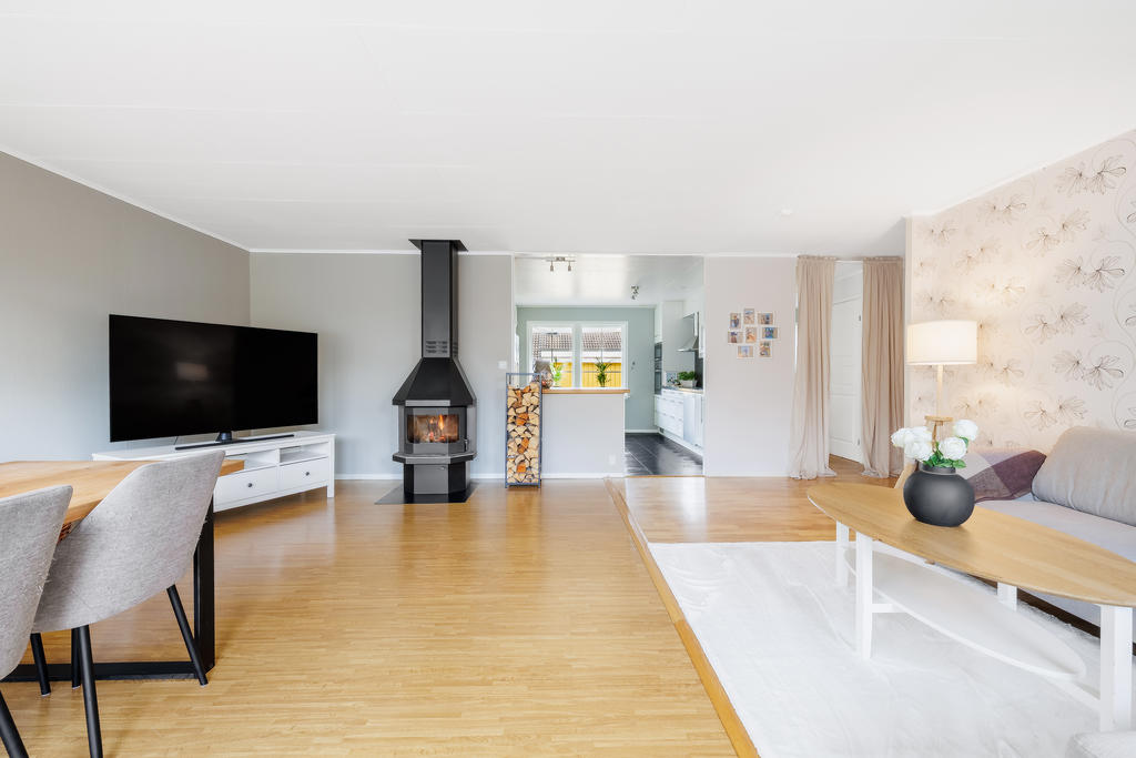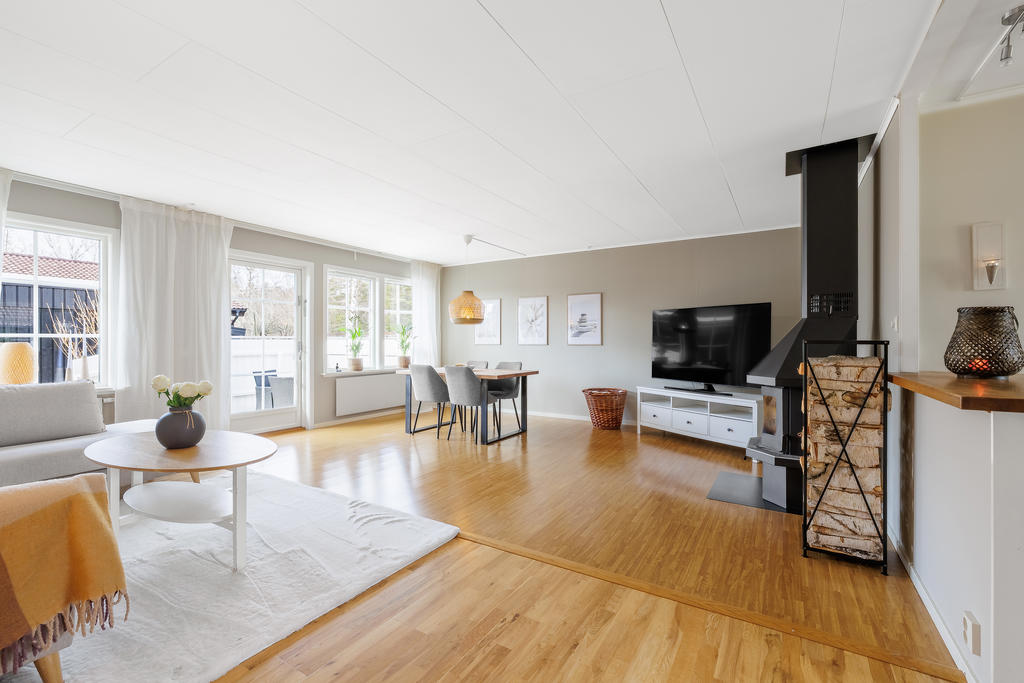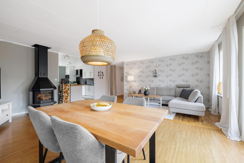 Modernt renoverad 1-plansvilla med garage i naturnära området Kvännaren
