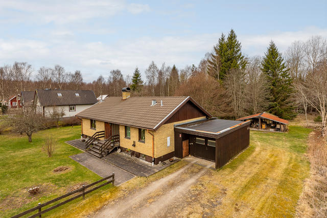 Familjevilla i ett plan med källare på ett behändigt avstånd in till samhället!