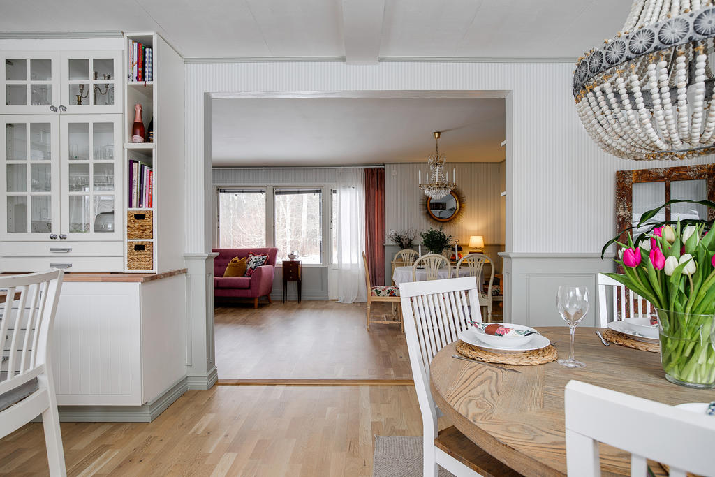 Trivsam enplansvilla med sjön runt hörnet och insynsskyddad tomt