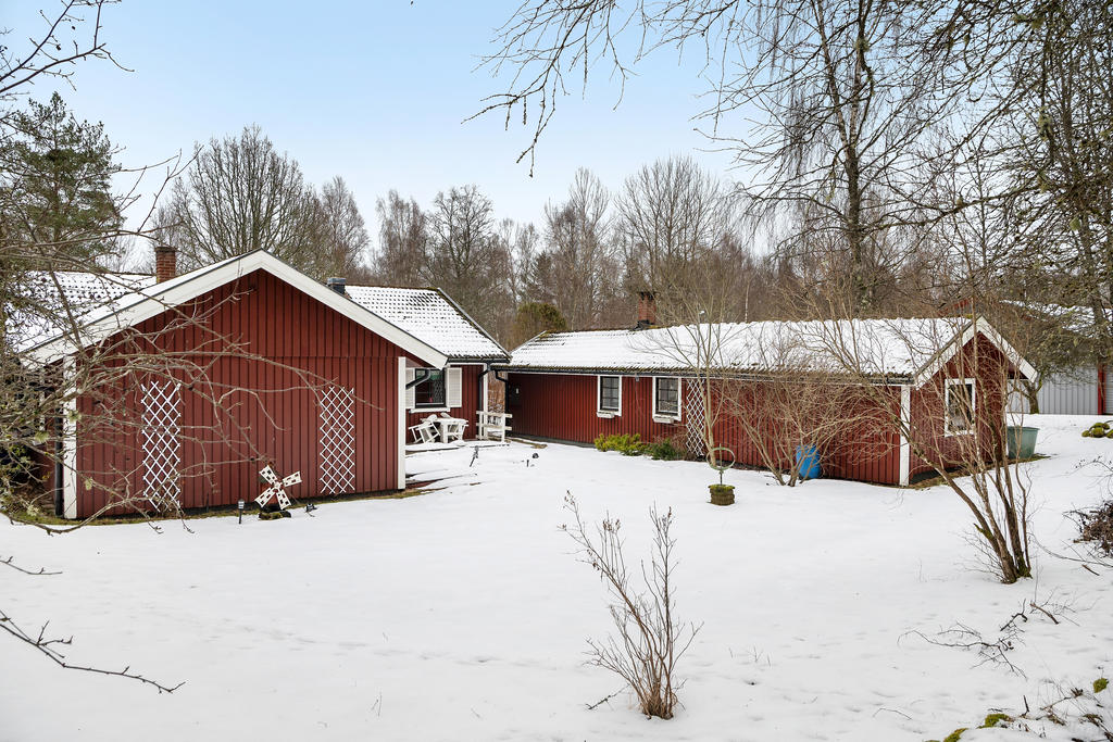 Fastigheten erbjuder även ett garage med plats för bil samt tillhörande snickardel och vedförråd, vilket gör detta till ett attraktivt alternativ för dig som vill ha både hobbyutrymmen och praktiska förvaringsmöjligheter nära bostaden. Den extra byggnaden om cirka 90 kvm är i enklare skick men öppnar upp för många möjligheter för den händige – kanske som gästhus, uthyrningsdel, ateljé, generationsboende eller arbetsplats.