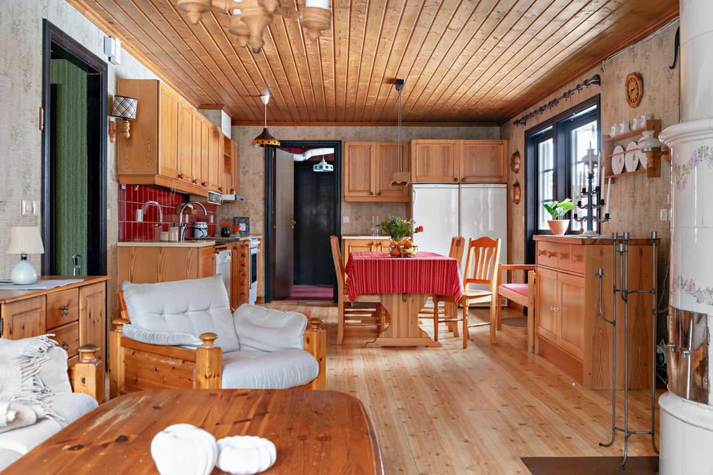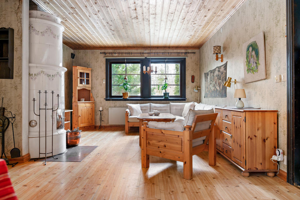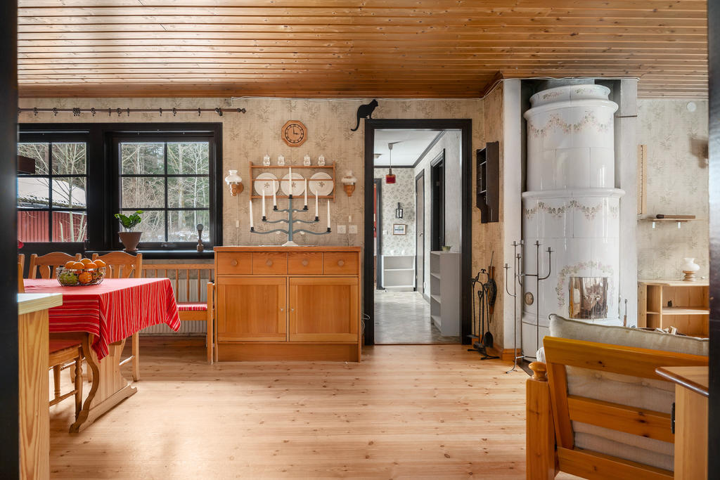Permanentbostaden bjuder på en varm och hemtrevlig känsla med flera fina originaldetaljer, generösa sällskapsytor och en planlösning som fungerar väl för familjelivet. I huset finns två badrum, vilket ger en praktisk vardag, och dessutom finns en vacker fungerande kakelugn som blir en naturlig samlingspunkt och bidrar med både charm och trivsel. Bergvärme ger energieffektiv uppvärmning och skapar ett bekvämt boende året om. Interiört möts man av en blandning av gedigna material, trägolv, träpanel och rum med personlighet, där det finns gott om plats för både umgänge och vila. Här finns också rymliga sovrum, sociala ytor och bra biutrymmen som gör huset lätt att trivas i.