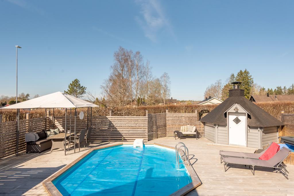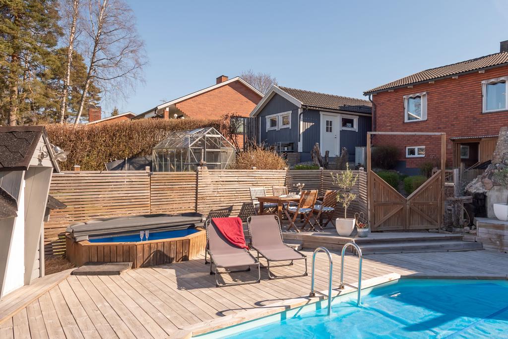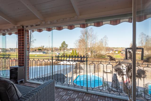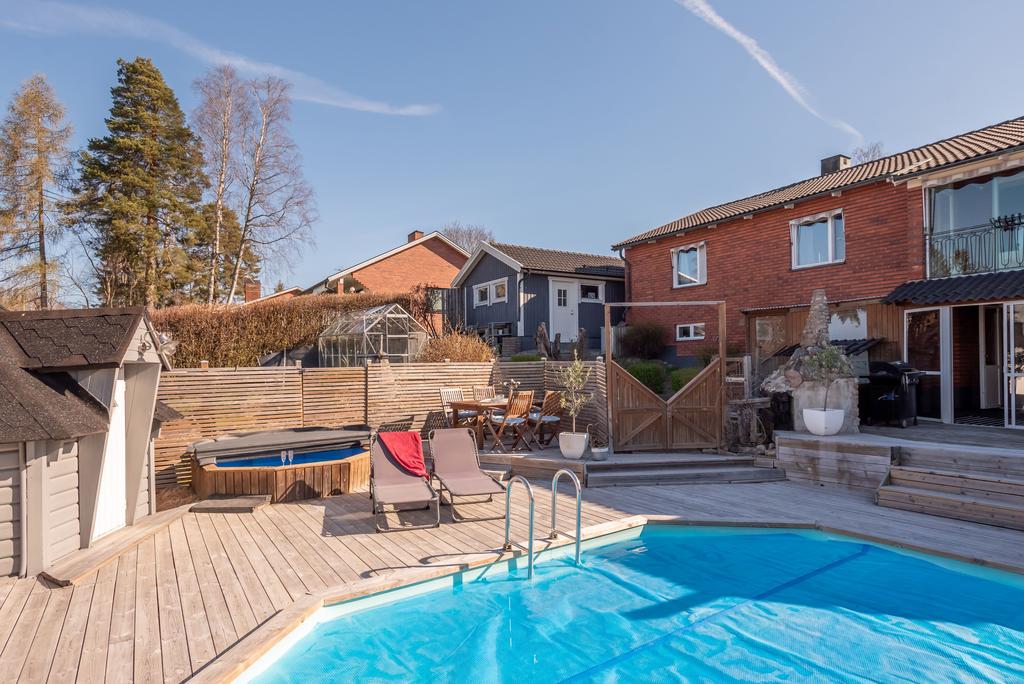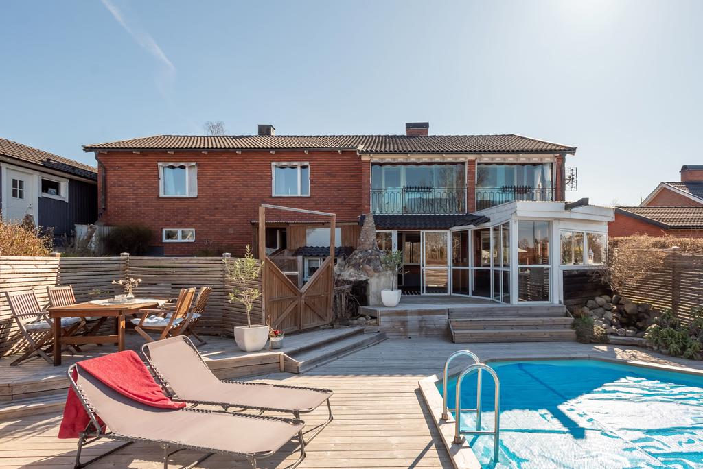 Drömboende med pool, grillkåta, uterum och generösa ytor – ett hem att leva i året runt!