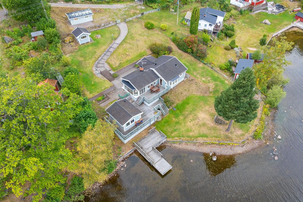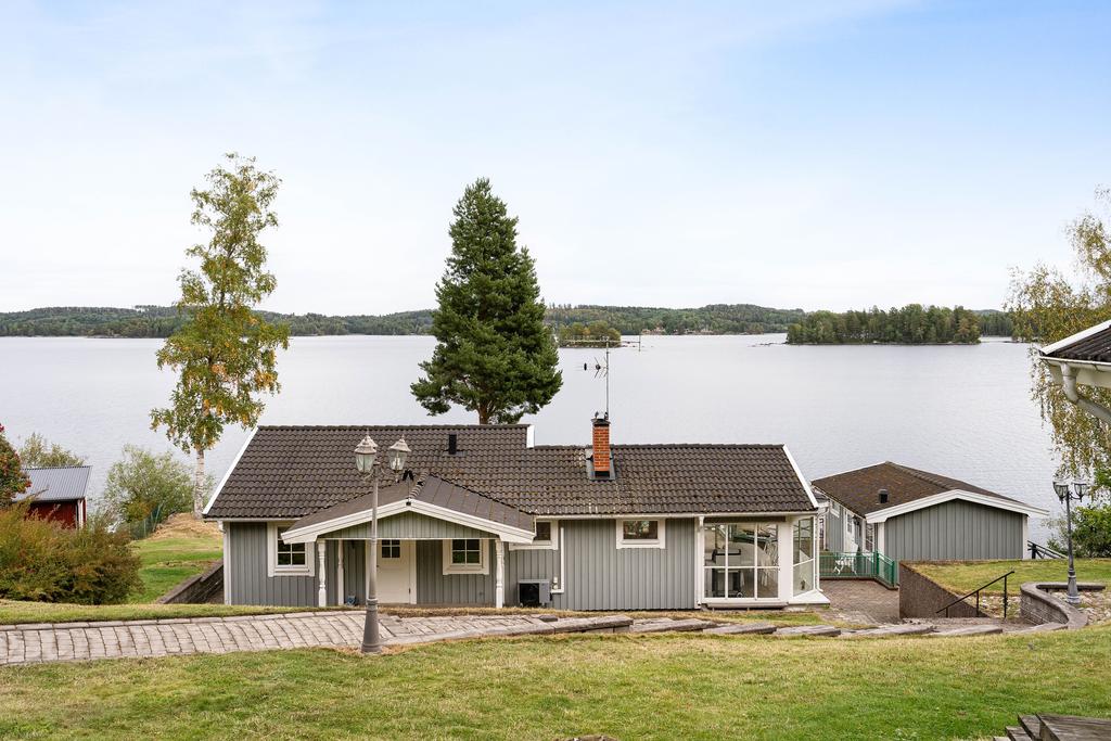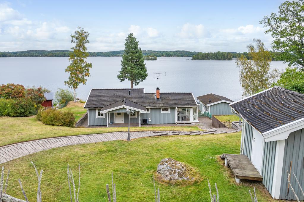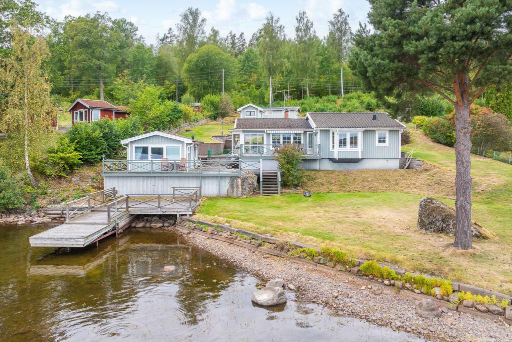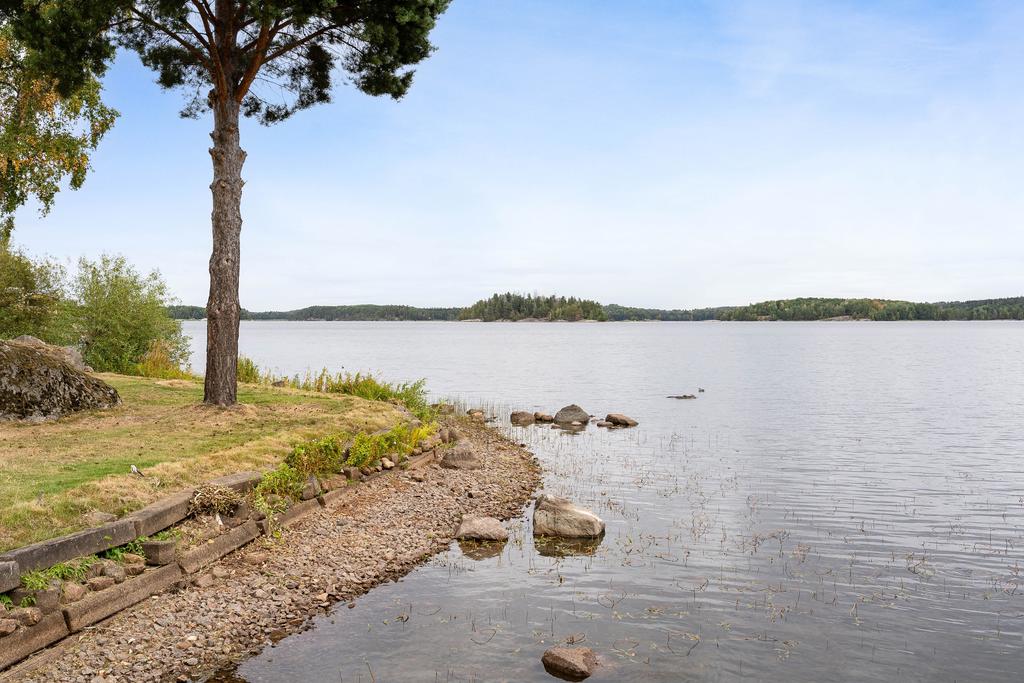 Denna fastighet har en fin strandlinje med brygga mot vattnet där man från en generös tomt har sällsamma vyer mot skog och sjö som ger varierade vyer där himlens färger speglas i vattnet. Här njuter man med åretruntstandard genom årstidernas växlingar där säsongernas skiften ger såväl soliga båt och baddagar, höstliga skogsturer och vintriga isar att åka skridsko på.