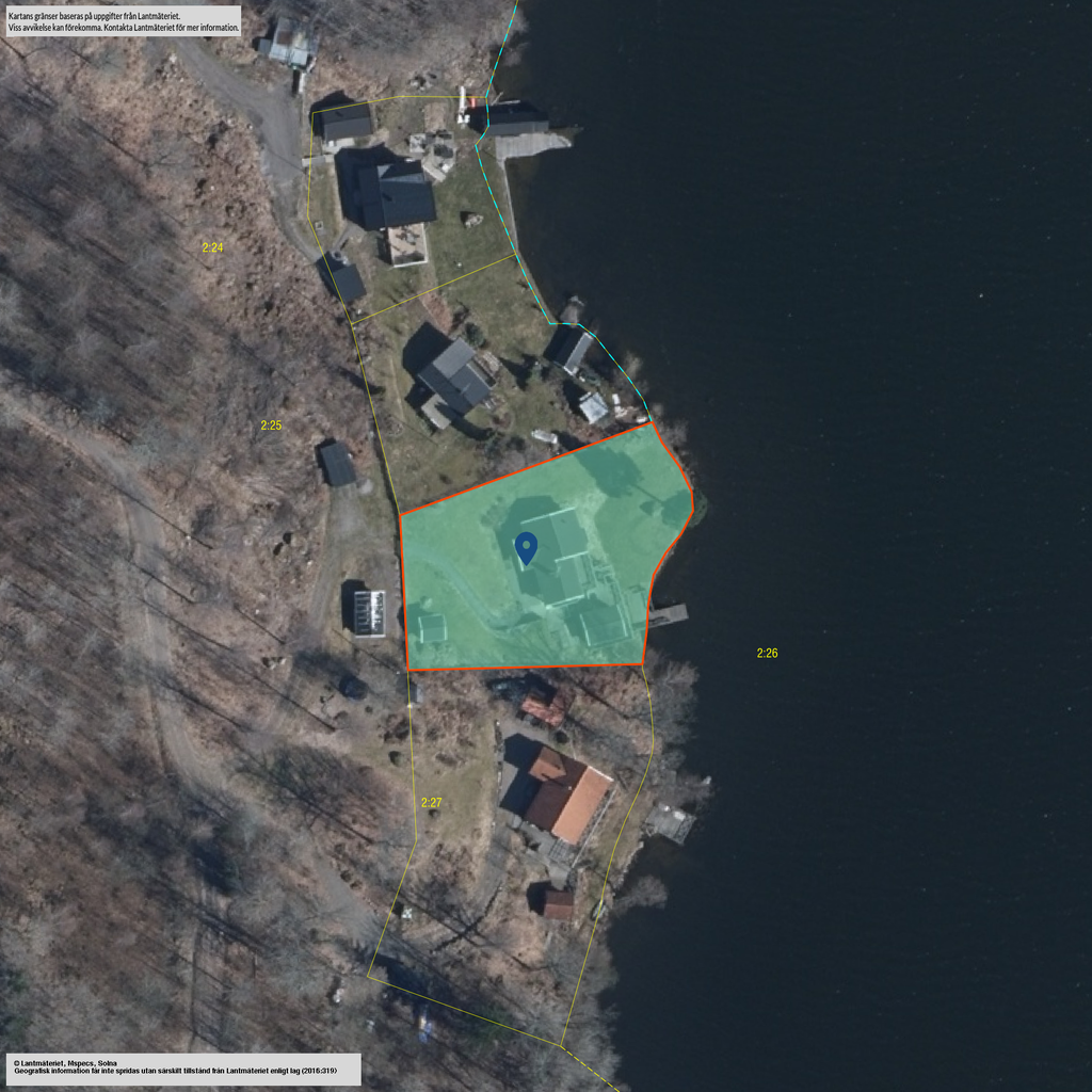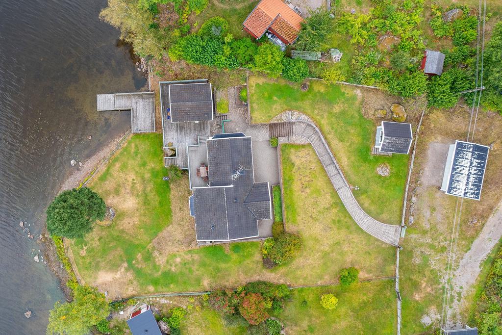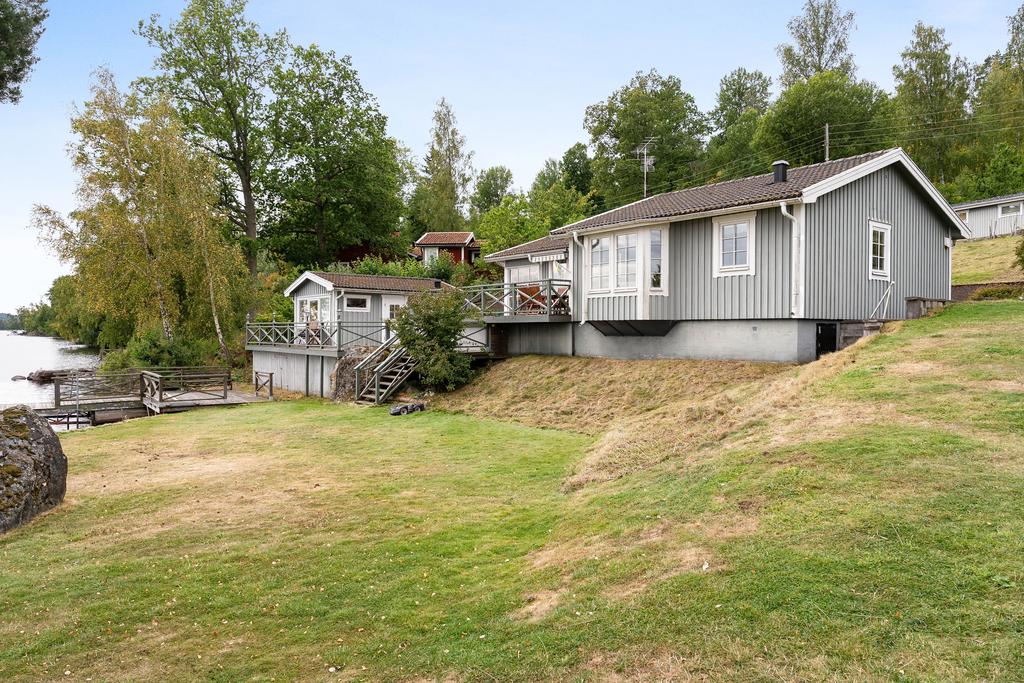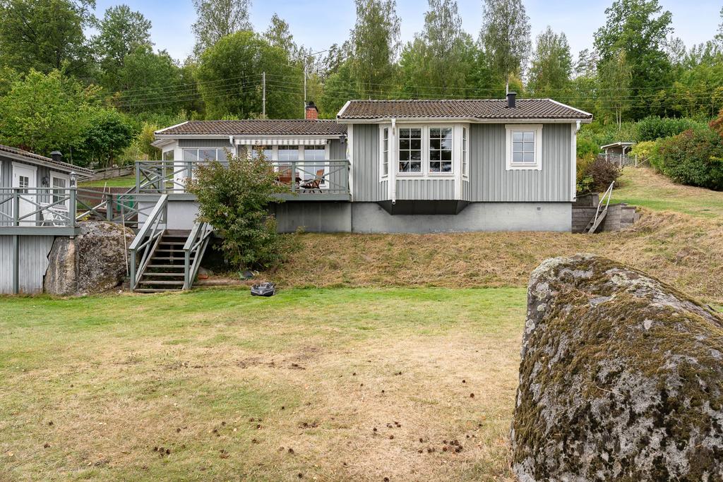 Denna fastighet har en fin strandlinje med brygga mot vattnet där man från en generös tomt har sällsamma vyer mot skog och sjö som ger varierade vyer där himlens färger speglas i vattnet. Här njuter man med åretruntstandard genom årstidernas växlingar där säsongernas skiften ger såväl soliga båt och baddagar, höstliga skogsturer och vintriga isar att åka skridsko på.