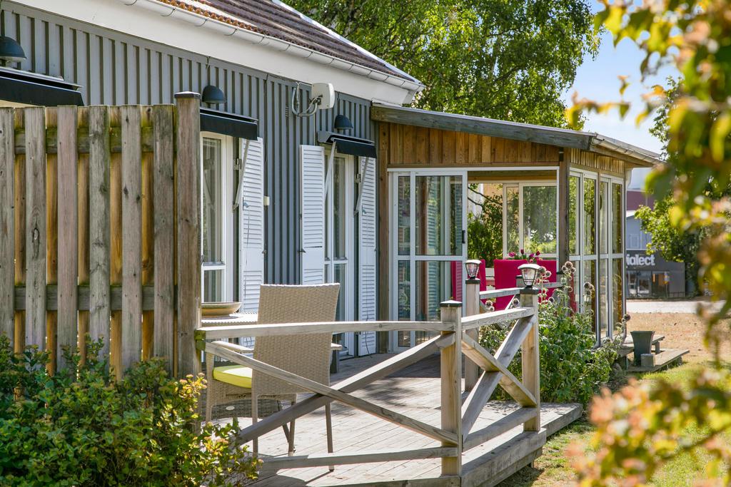 Vardagsrummet är stort och luftigt med fönster åt tre håll och gott om plats för umgänge och möblemang. I två väderstreck når man altanen och även ett inglasat uterum vilket ger hemmet enormt fina möjligheter till både sol och skugga på de generösa uteplatserna. En trappa upp finns ytterligare allrum med snedtak och öppet mot nocken samt nedåt entréplan och fina ljusinsläpp. Här finns även ytterligare sovrum med bra plats för säng samt med klädkammare och separat WC ”en suite”.