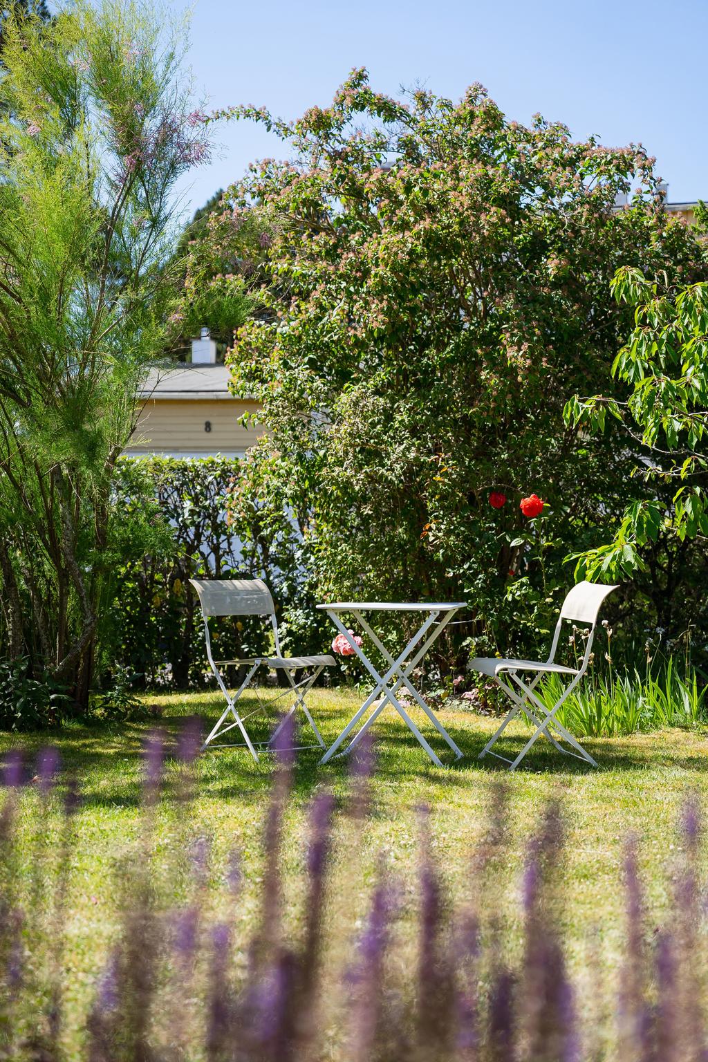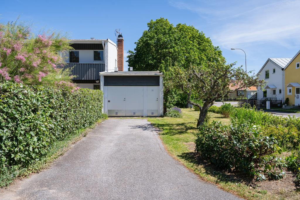 intill huset samt garage med flera platser för bilar. Via trädgården når man en välkomnande