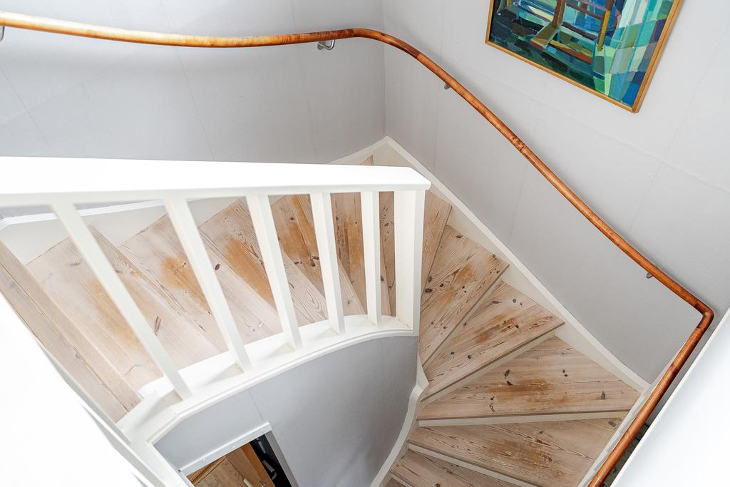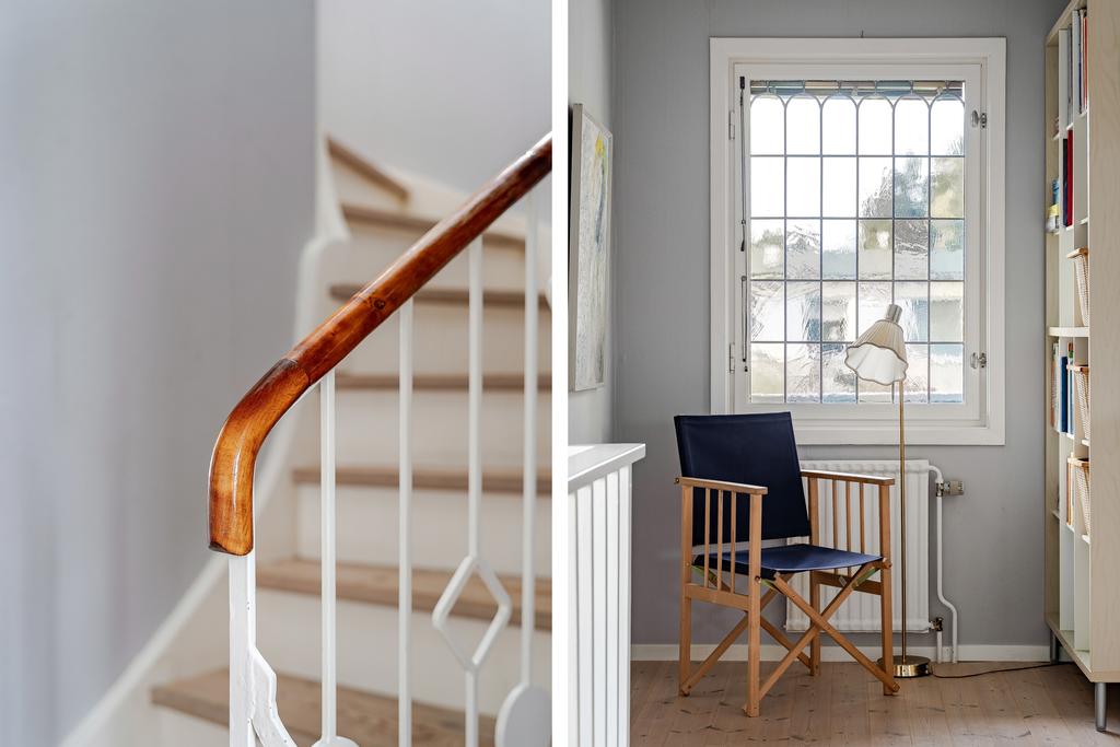 intrycket fångas man av husets härliga karaktär och fina detaljer. Det vackra trappräcket,