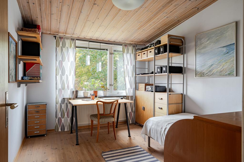 grönskande vy och intill trappan finns en möblerbar del för kontor eller läshörna. Det finns