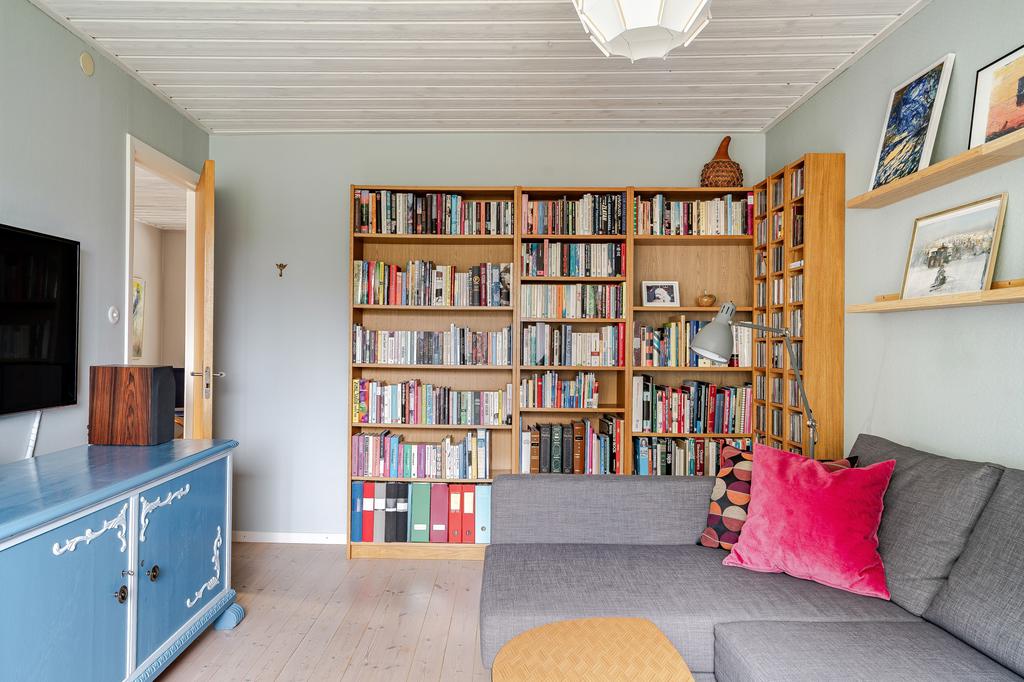 Här finns även det fina vardagsrummet med genomgående ljusflöde. En utgång leder ut mot