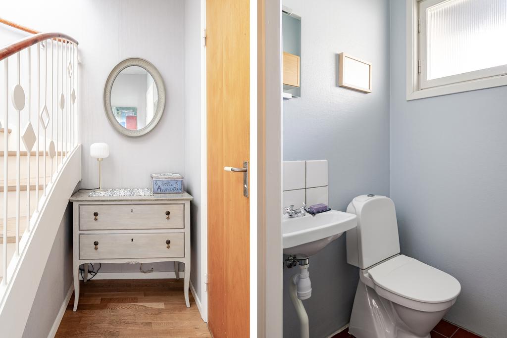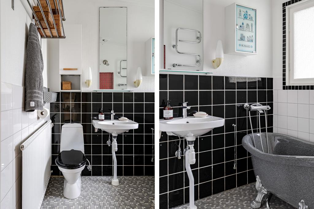 även badrum som renoverats med smakfull "touch" för husets ursprung med halvkaklade