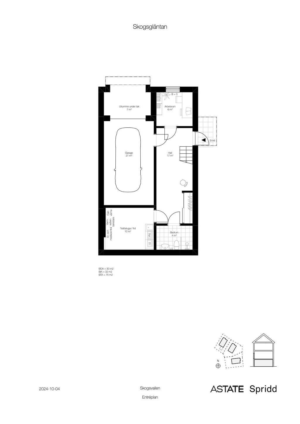 Husens entrésida är pampiga och tilltalande där man i det nedersta planet har access till bostaden via garage och huvudentré invid sidan av fastigheten. En otroligt spatiös entréyta med en länga av förvaring och vidare rumsligheter inåt med en stor tvättstuga och ett separat badrum med dusch. I entréplanet finns även ett sovrum samt förberett för pentry. Även garaget nås via den invändiga ytan vilket ger smidig anslutning till bilen årets kallare dagar.