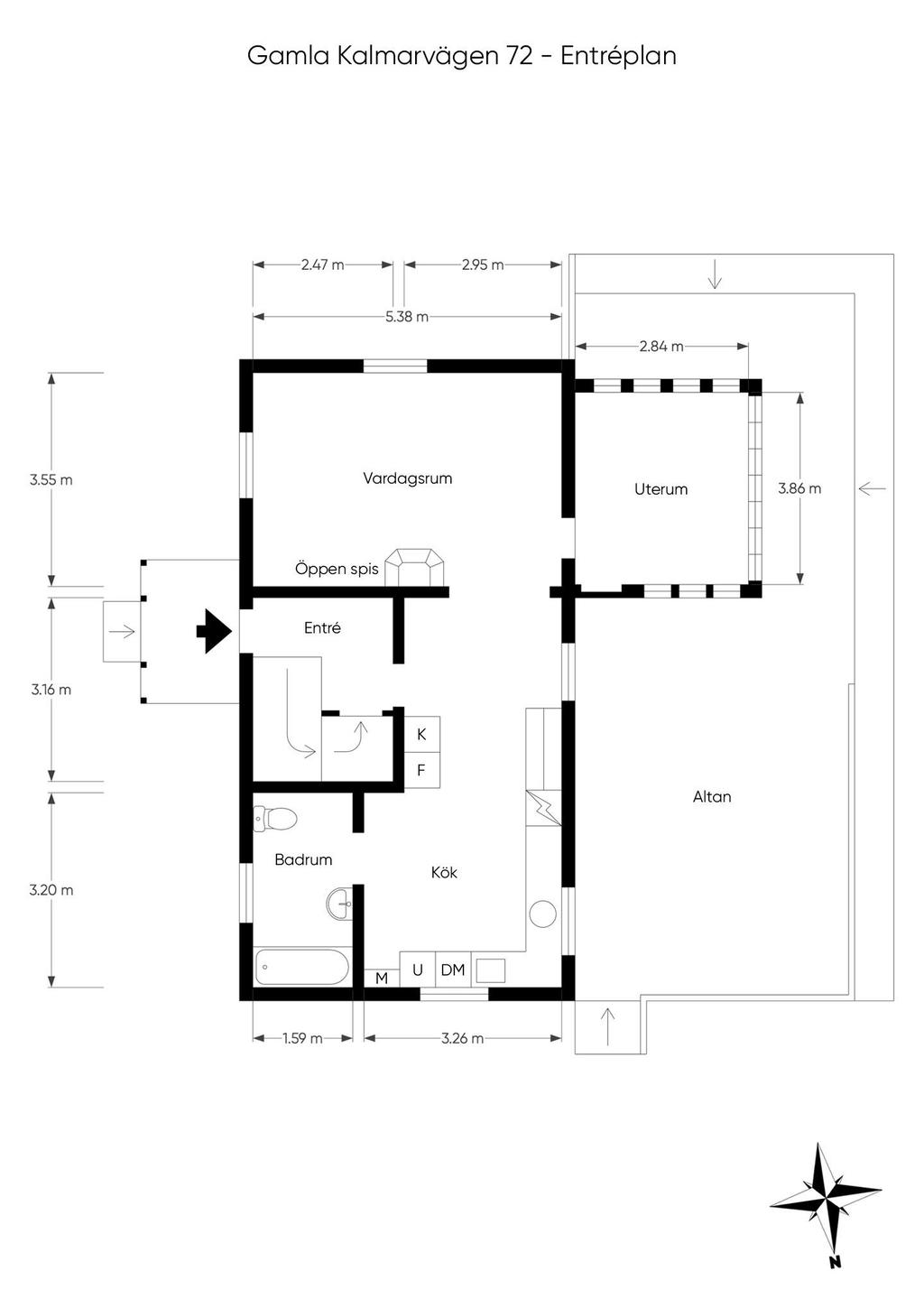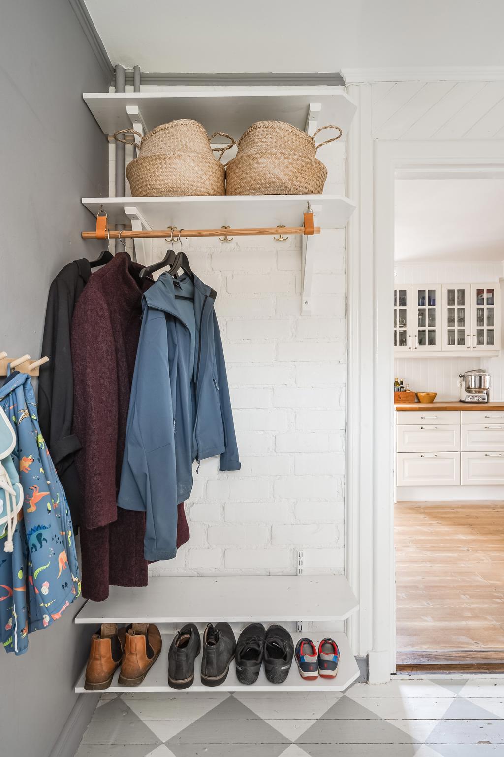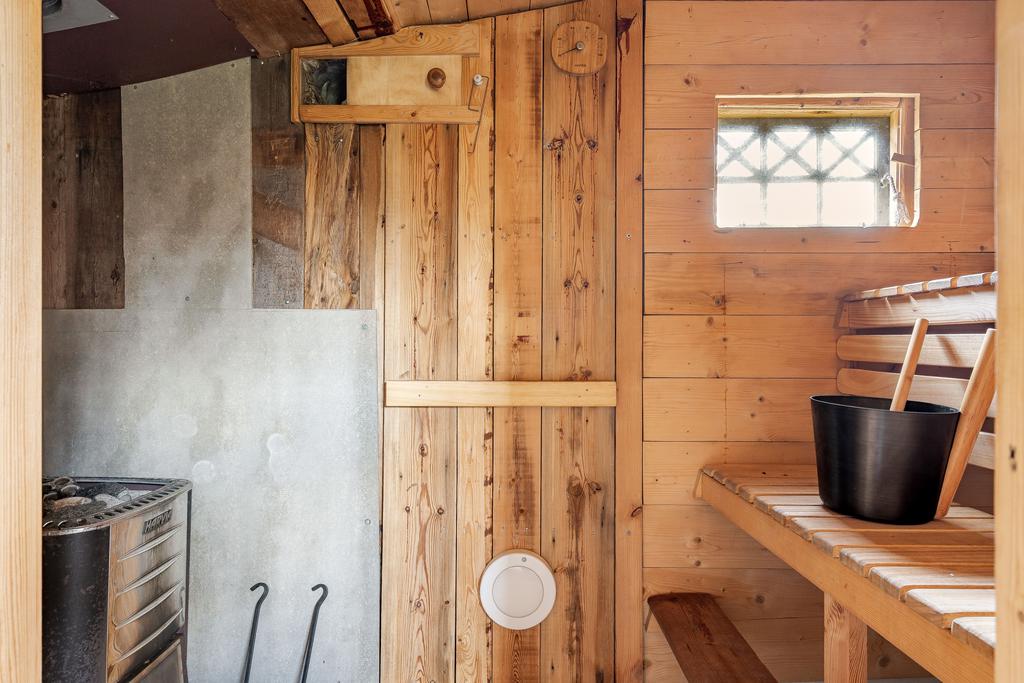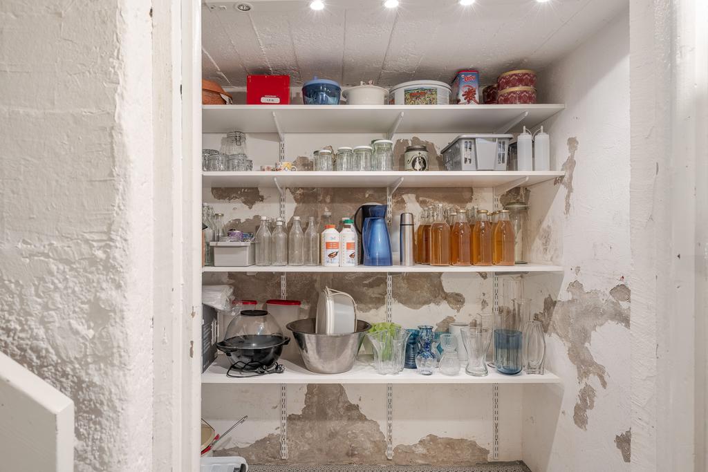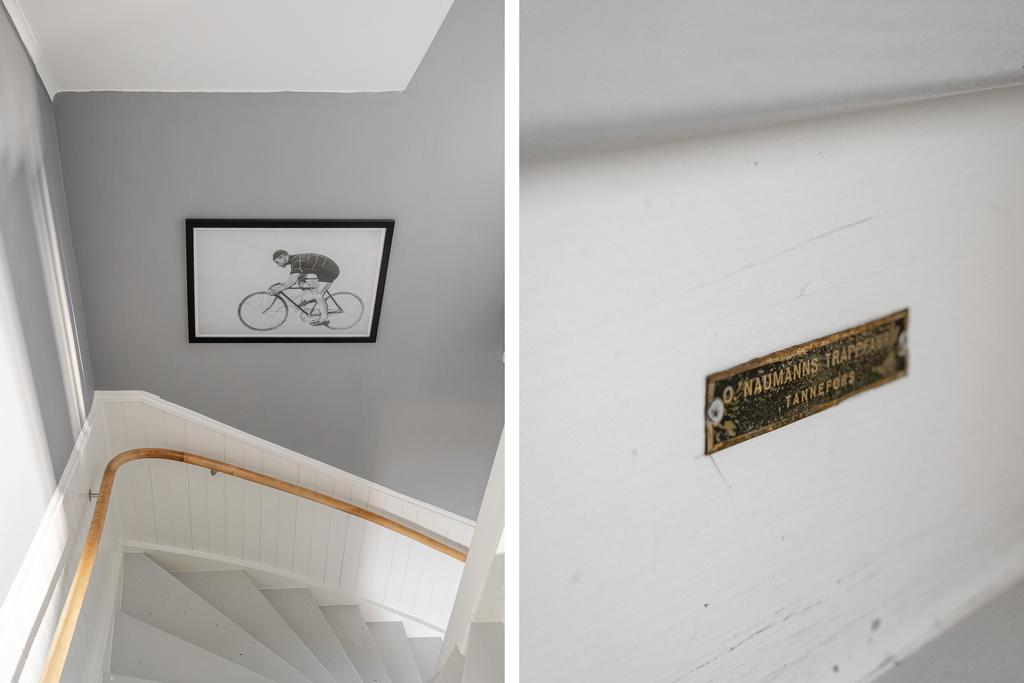 Huset har moderniserats löpande i en stilsäker anda där äldre detaljer möter uppdaterade materialval. Entréplanet rymmer sociala ytor, badrum och ett extra utrymme i det inglasade uterummet. Köket är lantligt och vackert renoverat med ljusa material, dubbla hoar och två fönster som ger härligt ljusinsläpp. Inredningen består av redahylla, pärlspont och gedigna, såpade trägolv som löper genom hela våningsplanet. Intill köket finns en naturlig matplats som sedan övergår i ett ombonat allrum med en stämningsfull braskamin. Från entréplanet nås även uterummet, där man kan njuta av utsikten och årstidernas skiftningar. Badrummet, renoverat 2023, är helkaklat i vitt och har klinkergolv, badkar och ett fint ljusinsläpp – tidlöst och modernt.