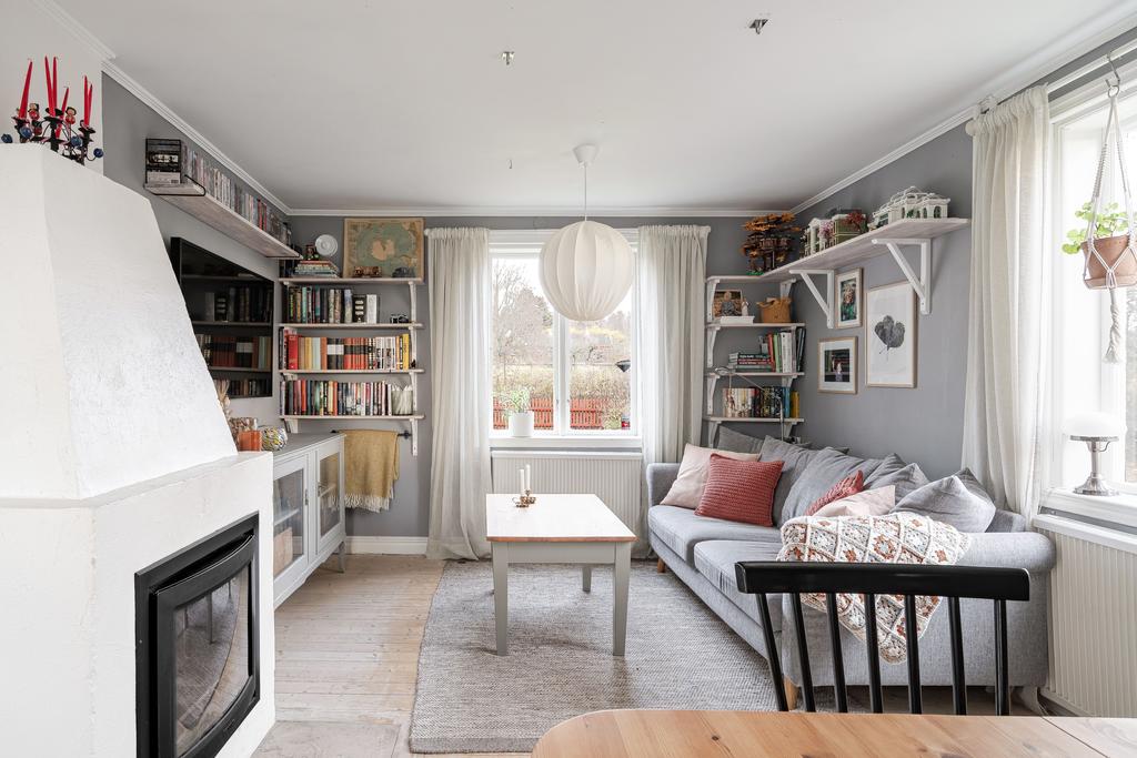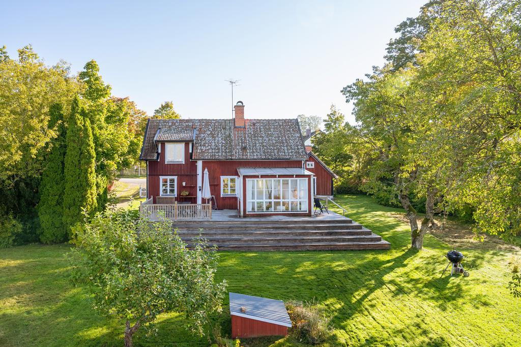 Hemmet är varsamt renoverat och har behållit sin karaktär, samtidigt som trädgården och tomten ramar in helheten på ett fantastiskt sätt. De öppna vyerna över åkrar och skog ger en härlig känsla av frihet, och den rymliga tomten bjuder på plats för både lek, odling och avkoppling. Vid infarten finns en generös parkeringsyta, och på fastigheten ligger även en friliggande förrådsbod med gott om förvaringsmöjligheter.