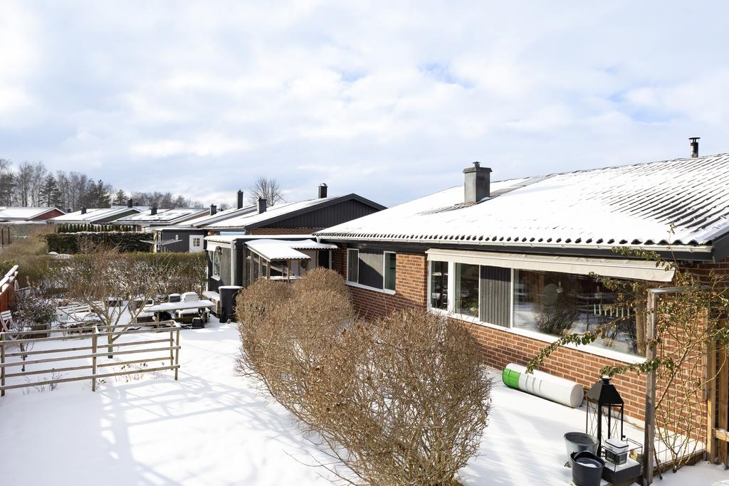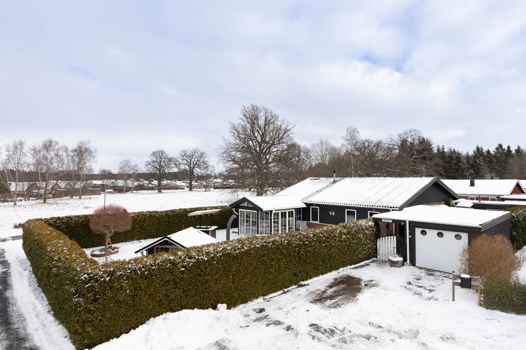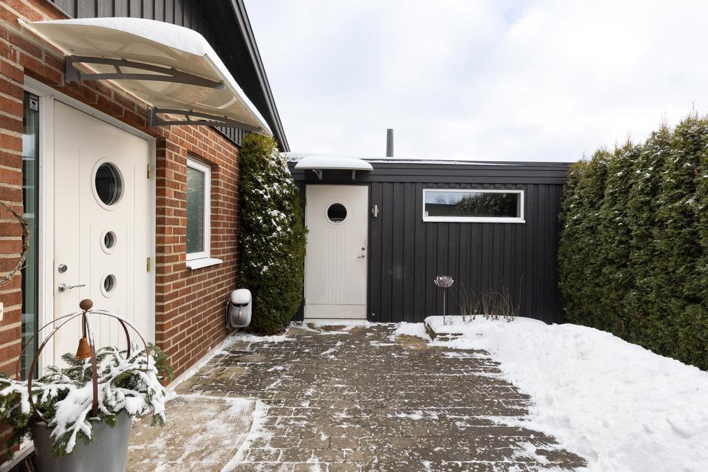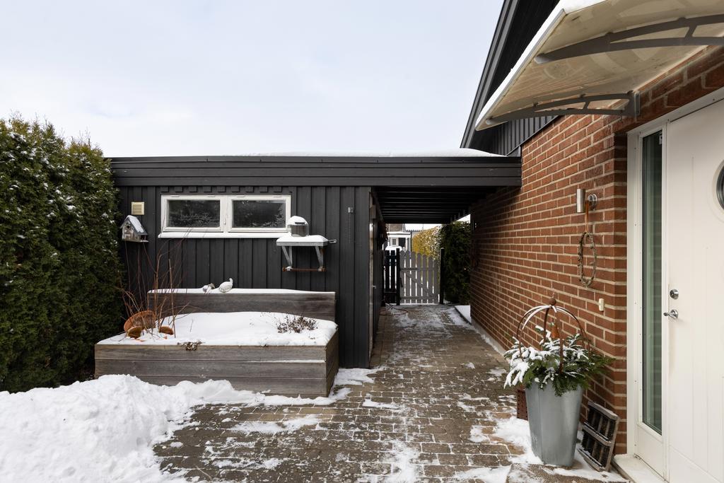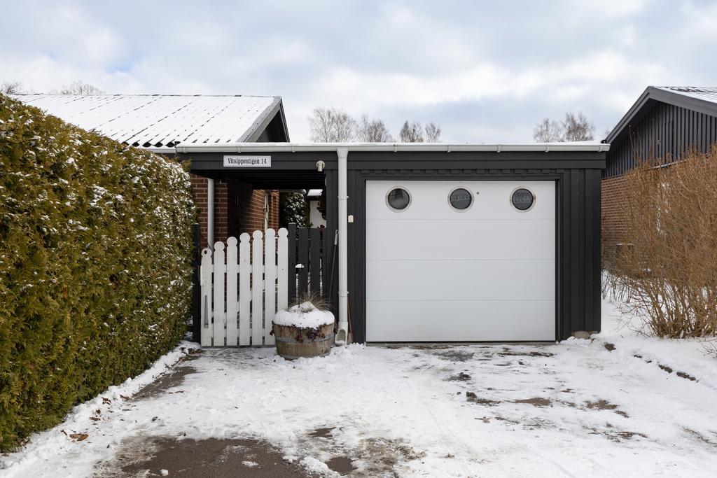 Detta hus är placerat längst in på en återvändsgata med trivsamt läge mot allmänning och grönska och där tomten omges av en vintergrön, välväxt häck som ger en skyddad oas till trädgårdens yta i soligt västläge. Intill entrésidan ges gott om plats för parkering på uppfart samt access till garaget och man tar sig vidare in på tomten genom grind till en välkomnande utemiljö med ingång till huset och även till en sidobyggnad som hänger samman med huset. Här finns praktisk funktion med egen ingång och förvaringsutrymmen. Det finns även sovrum och kontorsdel vilket ger en fin yta för generationsboende eller gäster.