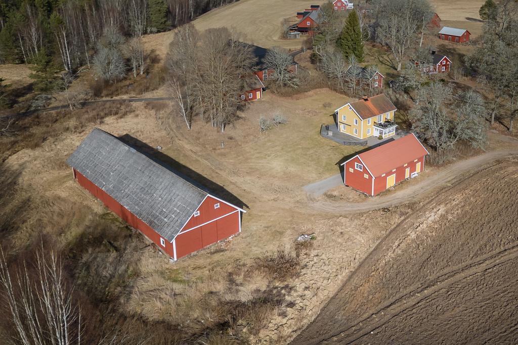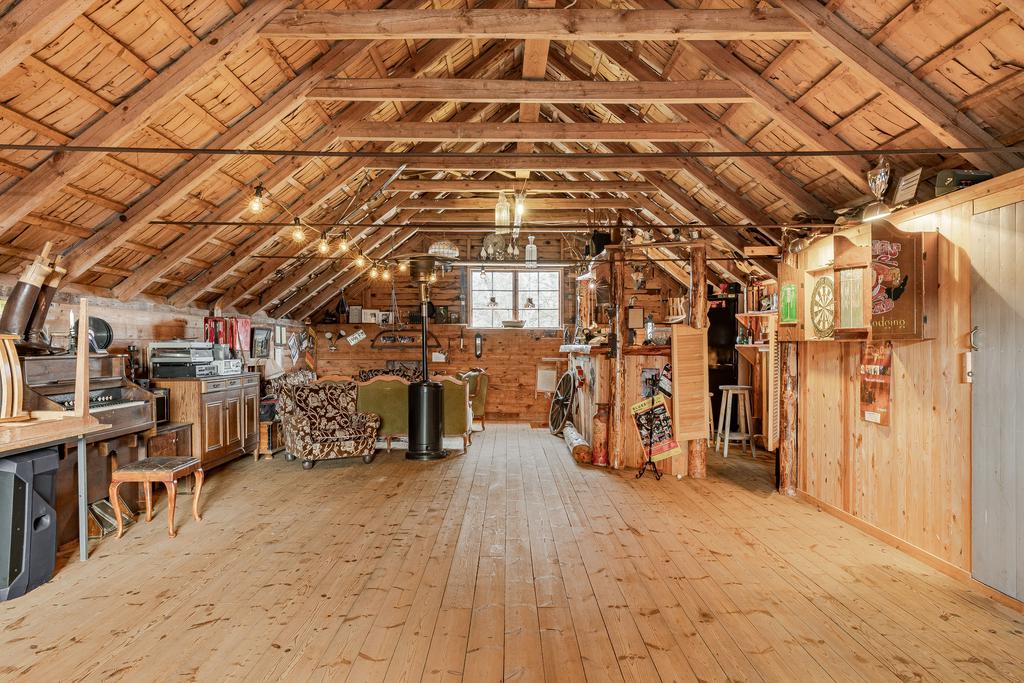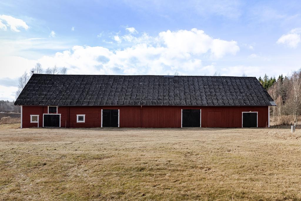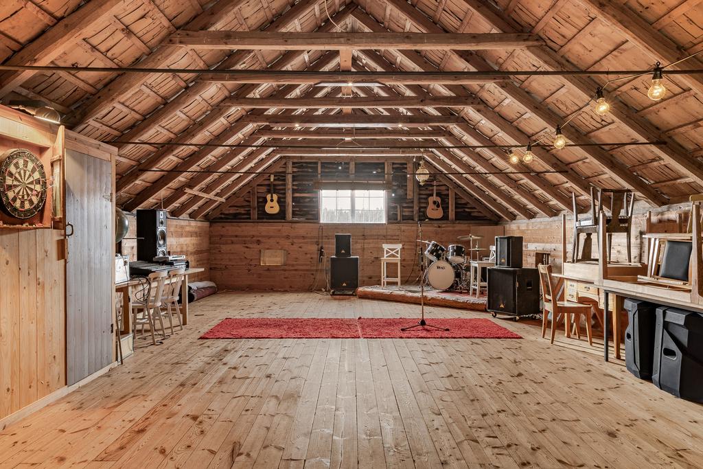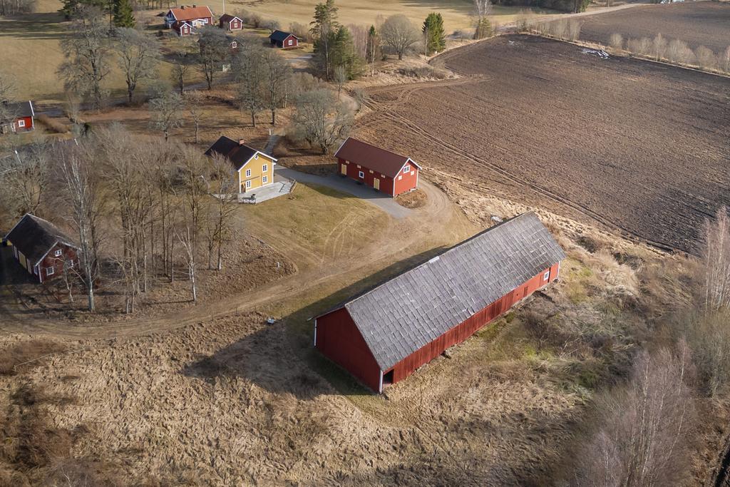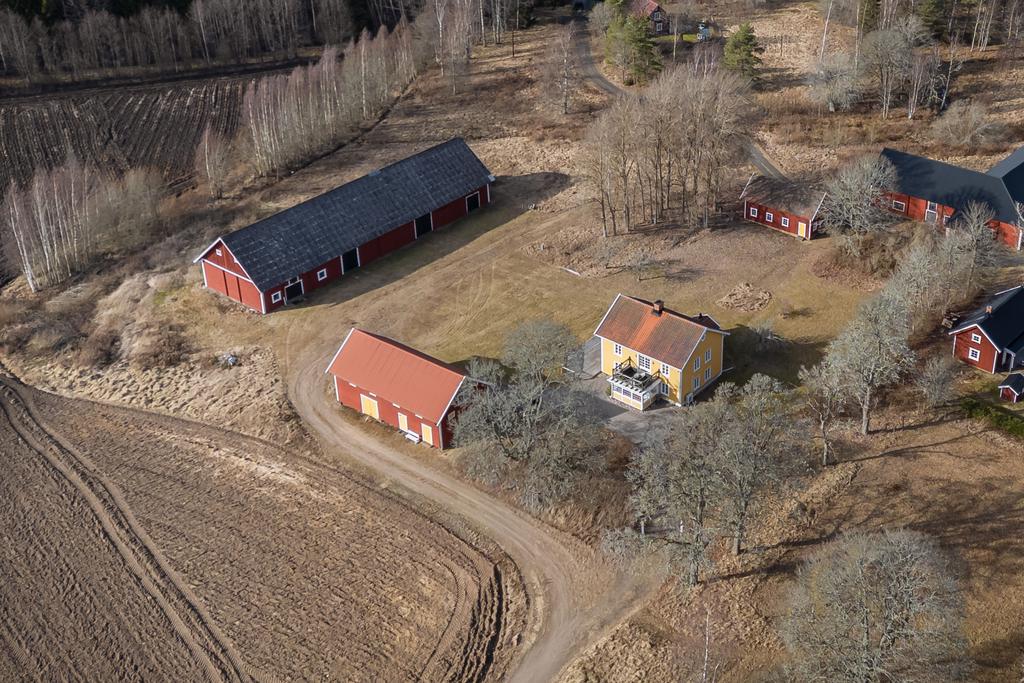 Här finns ladugård med stall med två boxar, verkstad, lagerutrymmen och förråd. Det finns även två ligghallar för lösdrift samt beteshagar och sadelkammare – perfekt för hästverksamhet eller djurhållning. En separat byggnad rymmer en gemytlig festlokal med bar och lounge, vinkällare samt gäststuga med bastu och badrum – idealiskt för generationsboende, uthyrning, retreat eller eventverksamhet. Därutöver finns garage, redskapsbod och hönshus.