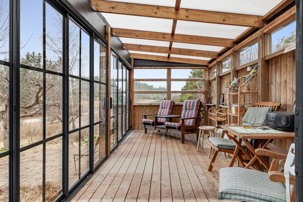 Stuga med kakelugn, vedspis och rymligt uterum!