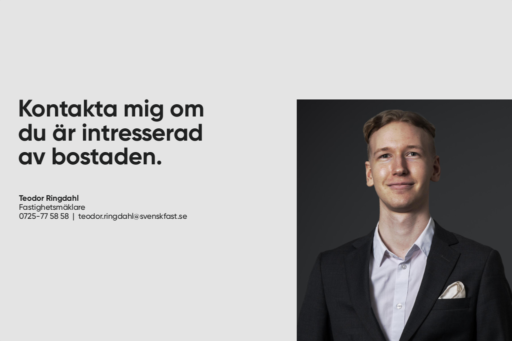 Med hjälp av vår boendekostnadskalkyl får du snabbt en uppfattning om vad den här bostaden skulle kosta dig per månad. Du kan enkelt justera siffrorna utifrån dina personliga förutsättningar. Kontakta mäklaren om du vill ha hjälp med beräkningen.