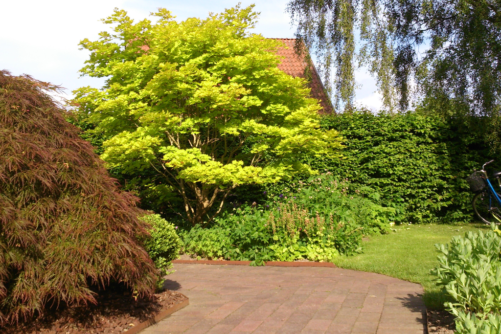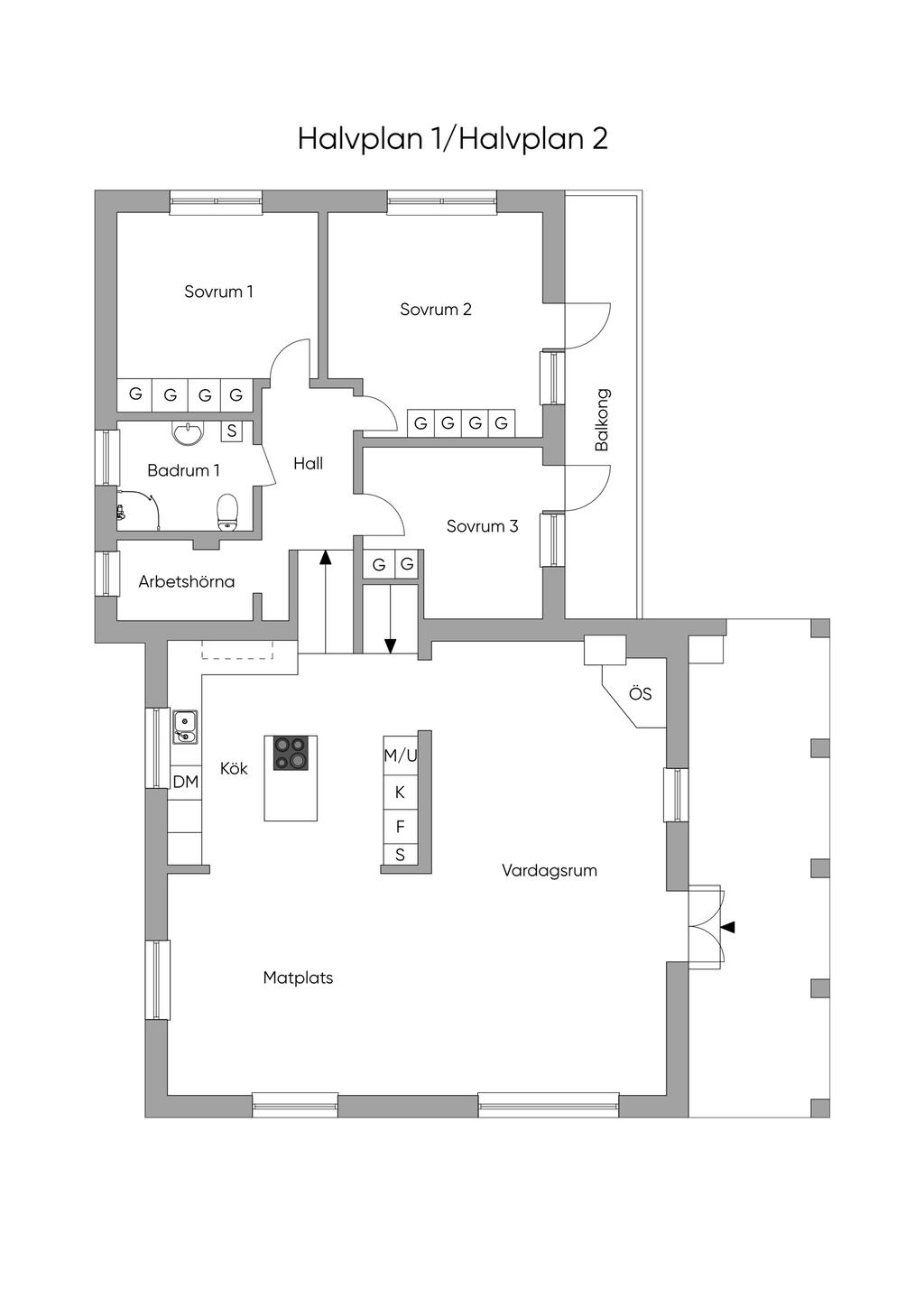 3-plansvilla med halvtrappor och inredd källare på stor hörntomt