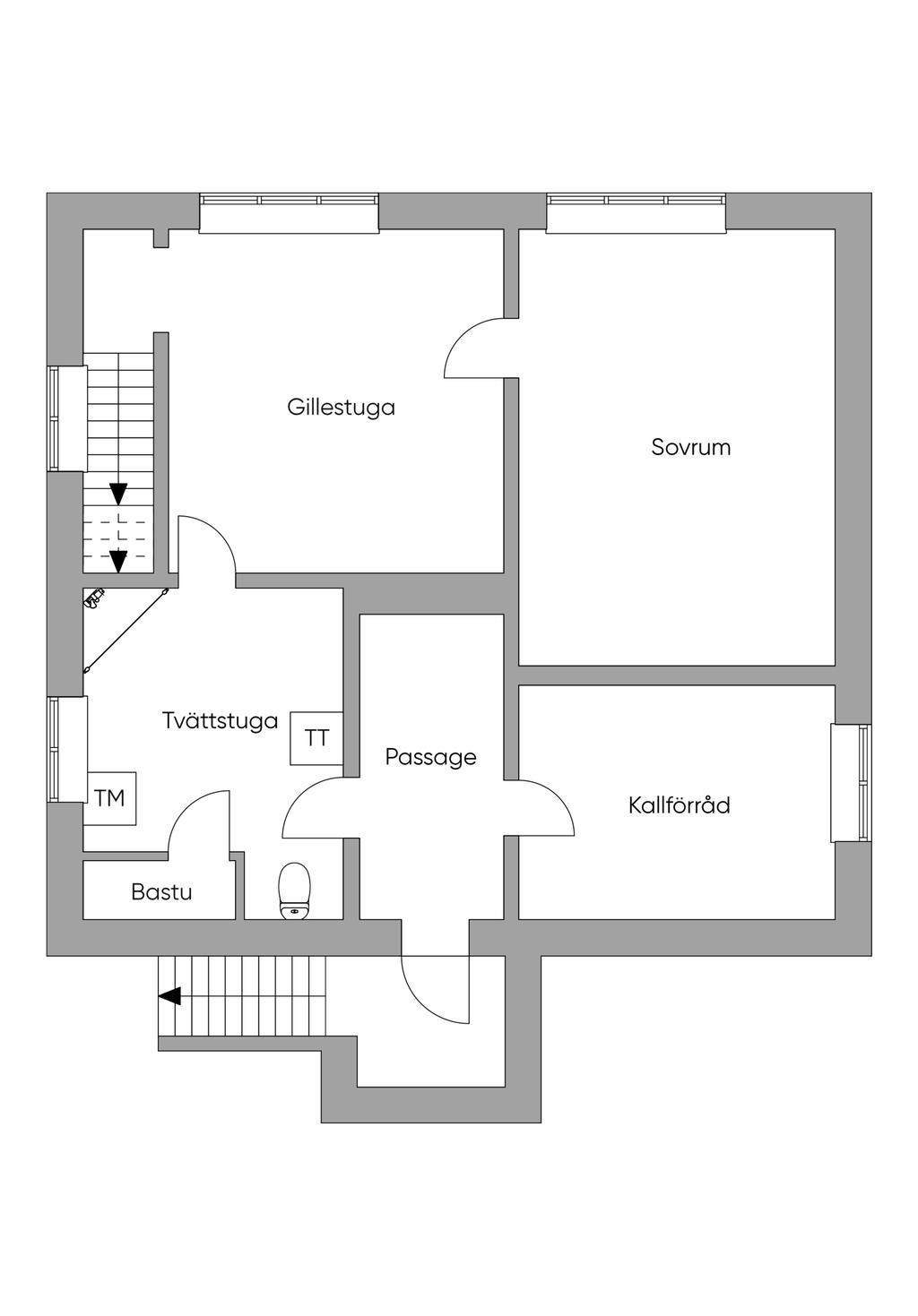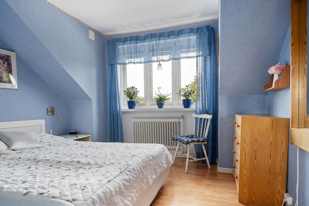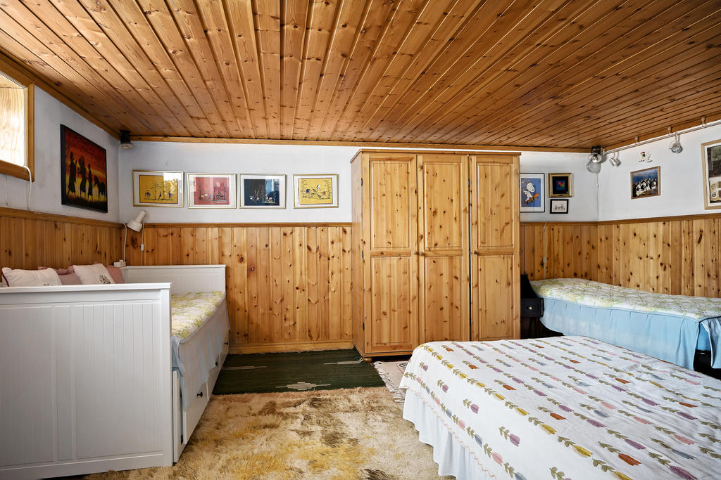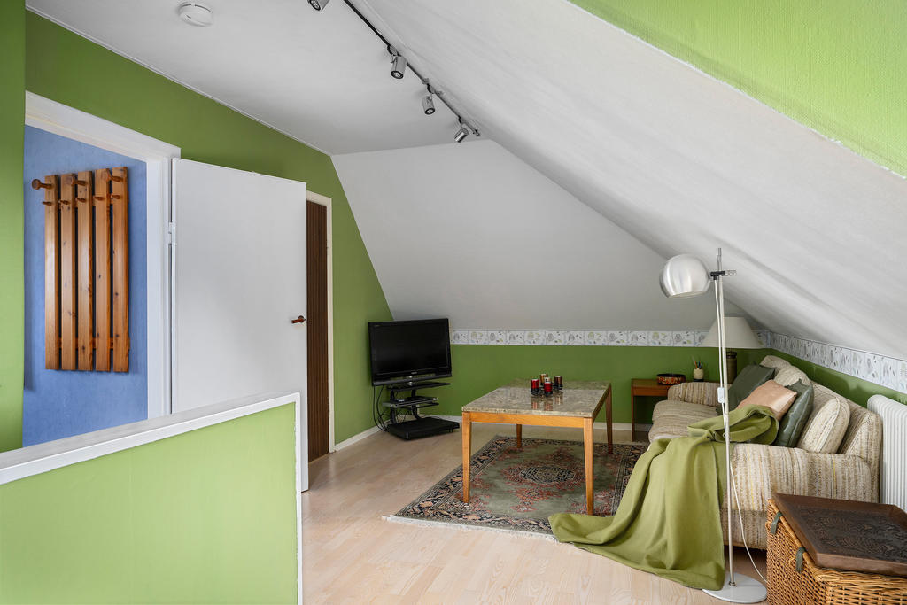 Huset sträcker sig över tre plan och rymmer flera flexibla ytor. På övre plan väntar två sovrum och ett charmigt allrum med snedtak, perfekt för familjens filmkvällar eller som barnens egna vrå. Källarplanet erbjuder dessutom extra utrymme för hobby, gäster eller förvaring – ett plan som enkelt anpassas efter livets olika skeden. I källaren finns även en WC, bastu, duschkabin samt en tvätt- och torktumlare.