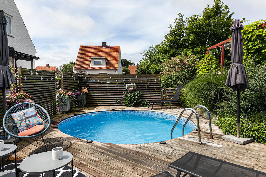 Drömboende på Svarvaregatan 11 – familjevänligt Höganäs-hus med pool och soligt hörnläge!
