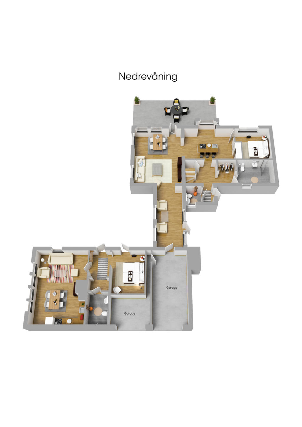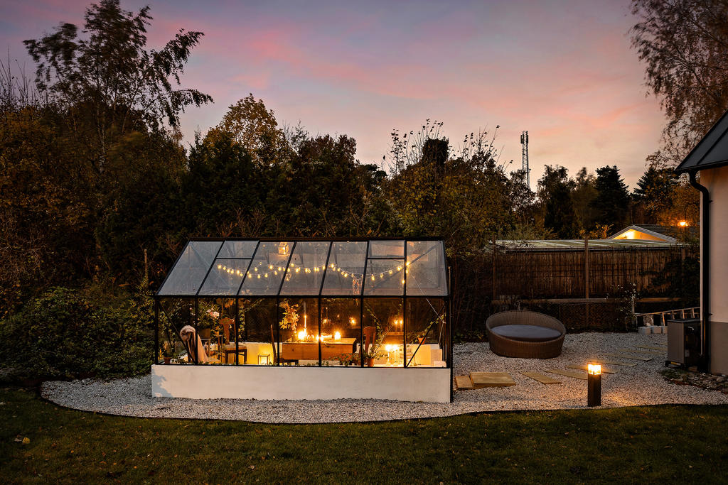 Utanför väntar en grön och trivsam trädgård med växthus för odlingsglädje, härliga sommarkvällar eller ett glas vin och en bok. Garaget har gott om plats för både bil och förvaring, och uppfarten sväljer utan problem flera fordon. Den separata lägenheten med eget kök, vardagsrum, sovrum och badrum öppnar upp för möjligheter. Det är perfekt för uthyrning, generationsboende eller till gästerna som vill stanna lite för länge.