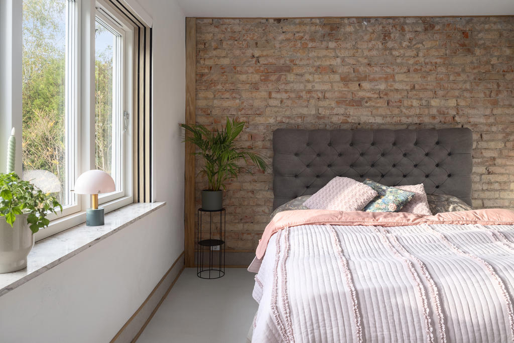 Sovrummet på entréplan är en privata oas för vila tack vare den sammetslena microcementen på golvet tillsammans med golvvärmen. Belysningen är mjuk och justerbar, skapad för att ge ett omedelbart lugn. En trappa upp väntar ytterligare ett ljust och luftigt rum öppet till nock, även detta med komfortabel golvvärme och vacker ekparkett. Är detta tonåringens egen domän, ett lyxigt gästrum, eller kanske ett tyst hemmakontor med utsikt över tomten?