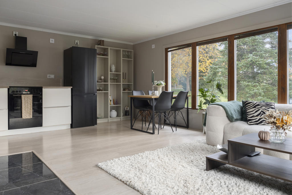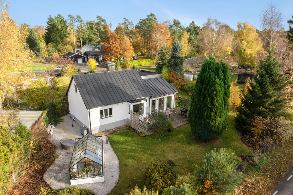 Utanför väntar en grön och trivsam trädgård med växthus för odlingsglädje, härliga sommarkvällar eller ett glas vin och en bok. Garaget har gott om plats för både bil och förvaring, och uppfarten sväljer utan problem flera fordon. Den separata lägenheten med eget kök, vardagsrum, sovrum och badrum öppnar upp för möjligheter. Det är perfekt för uthyrning, generationsboende eller till gästerna som vill stanna lite för länge.