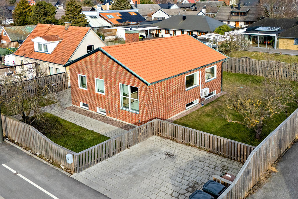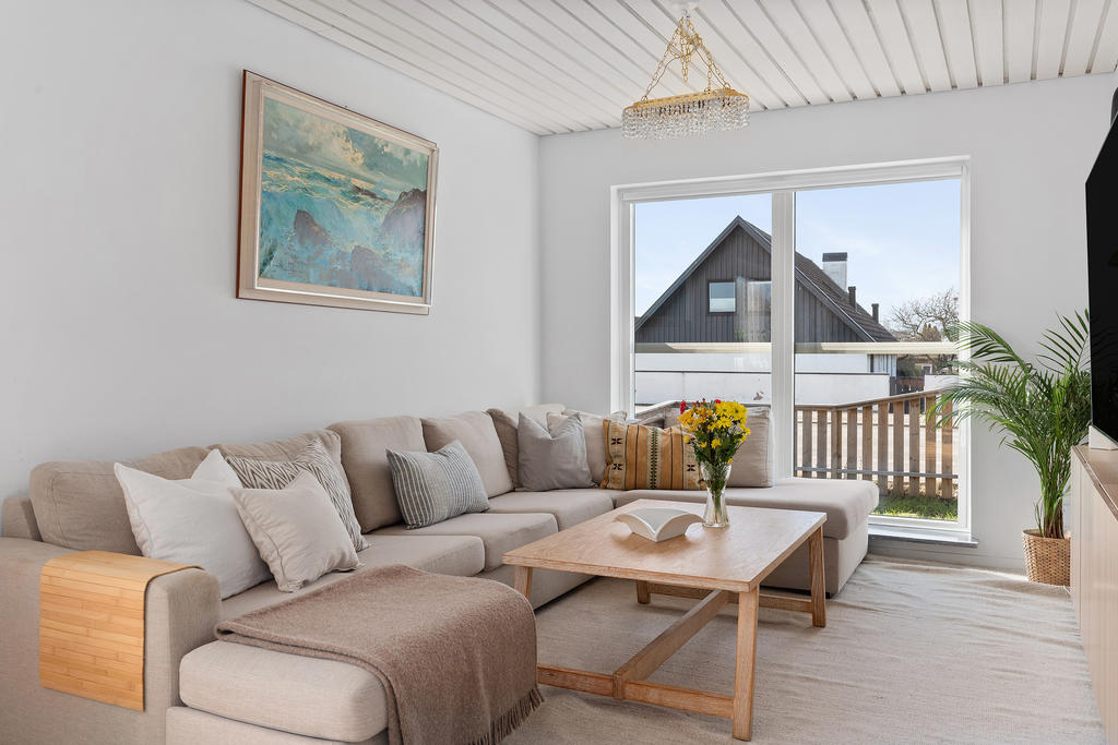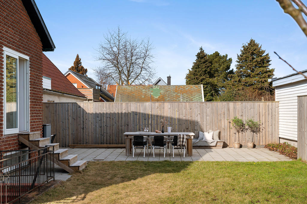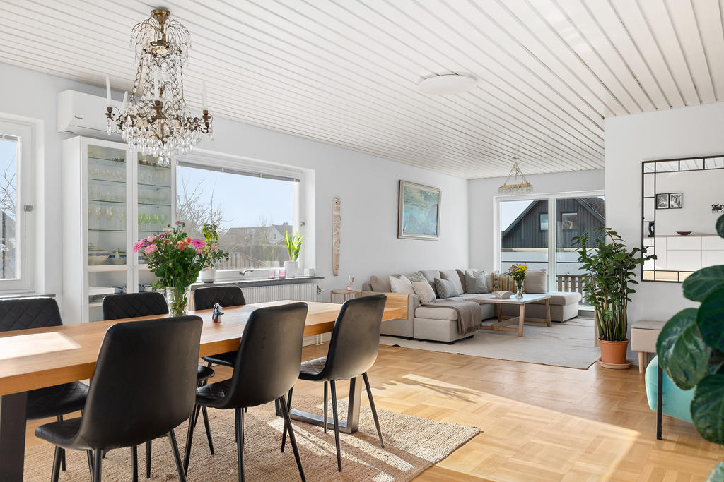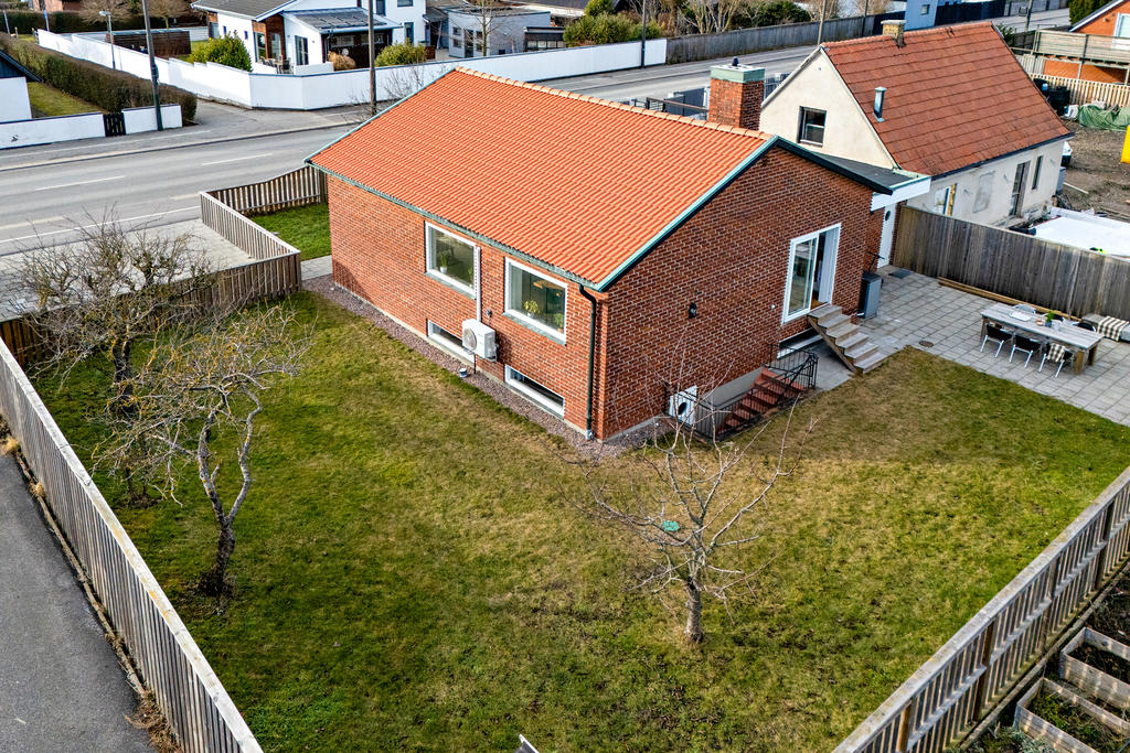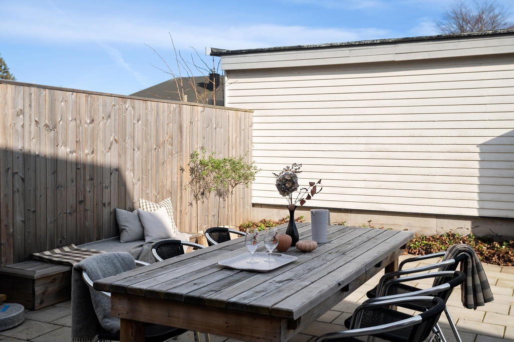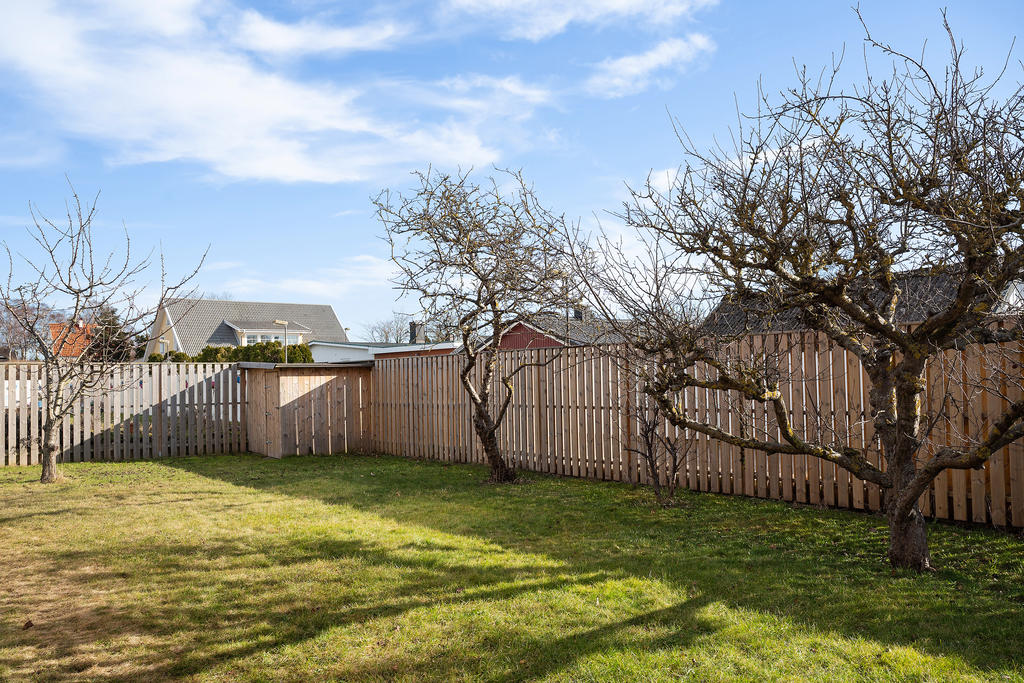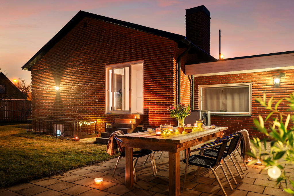 Socialt planerad villa med trivsam trädgård i populära Bunkeflostrand
