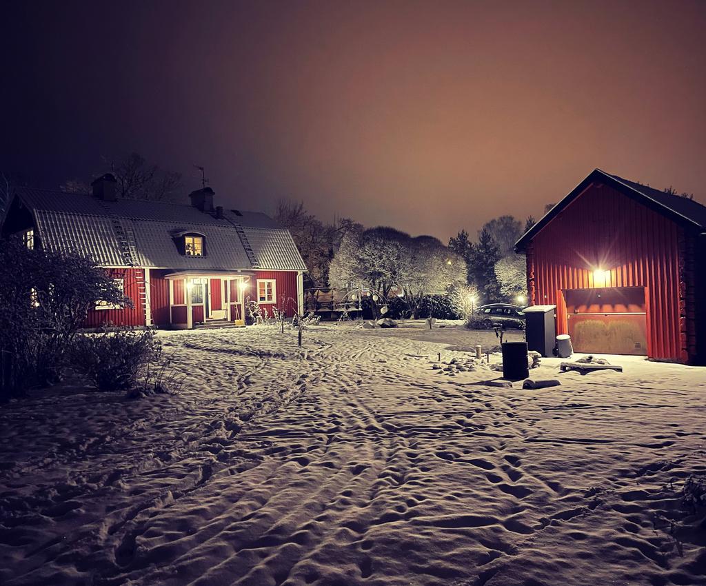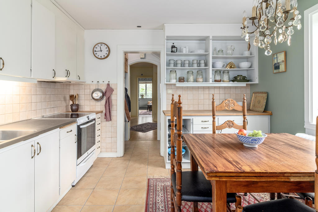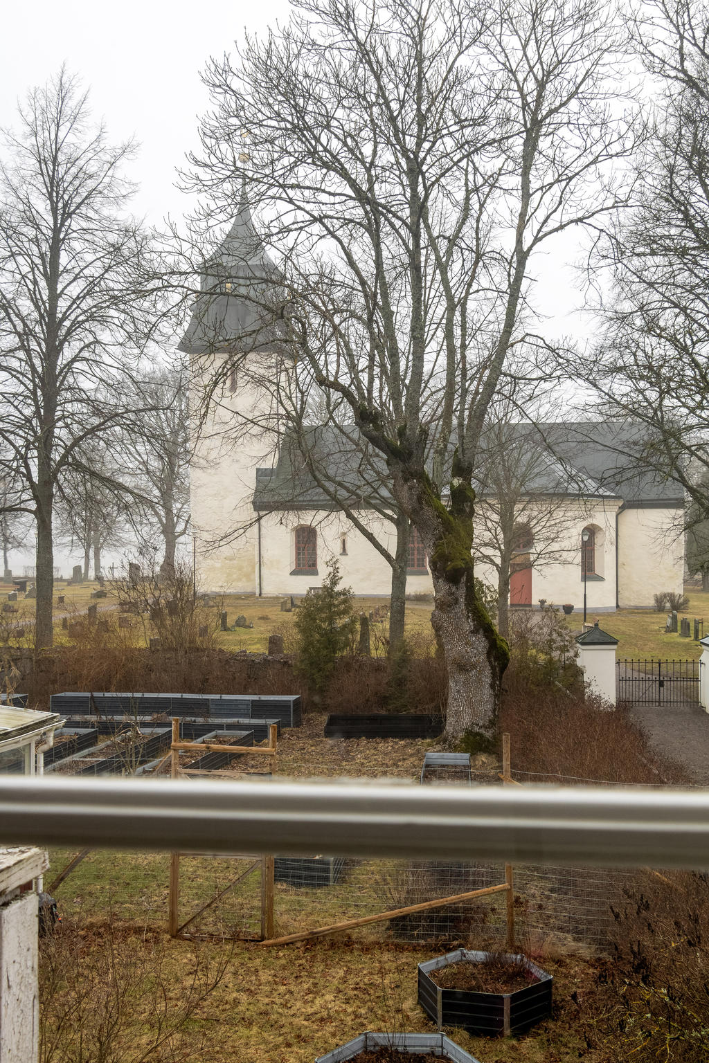 De väl tilltagna ytorna präglas av en härligt rymd med högt till tak, ett vackert ljus från höga fönster och dekorativa snickeridetaljer. Golven pryds av slipad fiskbensparkett och i de spröjsade fönstren sitter skimrande gamla glas. Planlösningen är klassisk med generösa sociala ytor på entréplan, tre rum i fil med dekorativa pardörrar med speglar, öppen spis med gjutjärnsinsats och serveringsgång till kök, samt mer privata utrymmen på övre plan. Vacker gårdsbild med flaggstången som knutpunkt bland blommande äppelträd, krattade grusgångar och faluröda byggnader med vita knutar och enkupigt lertegel på taken. Trädgården är en odlingsdröm för självhushållaren, där hönsen strövar fritt bland fruktträd, köksträdgården och växthusen. Den uppväxt trädgården är insynsskyddad och har underbar utsikt över öppna fält intill. Flertalet uteplatser med sollägen från frukostkaffet fram till sista kvällssolen, eller i skuggan under de blommande äppelträden.