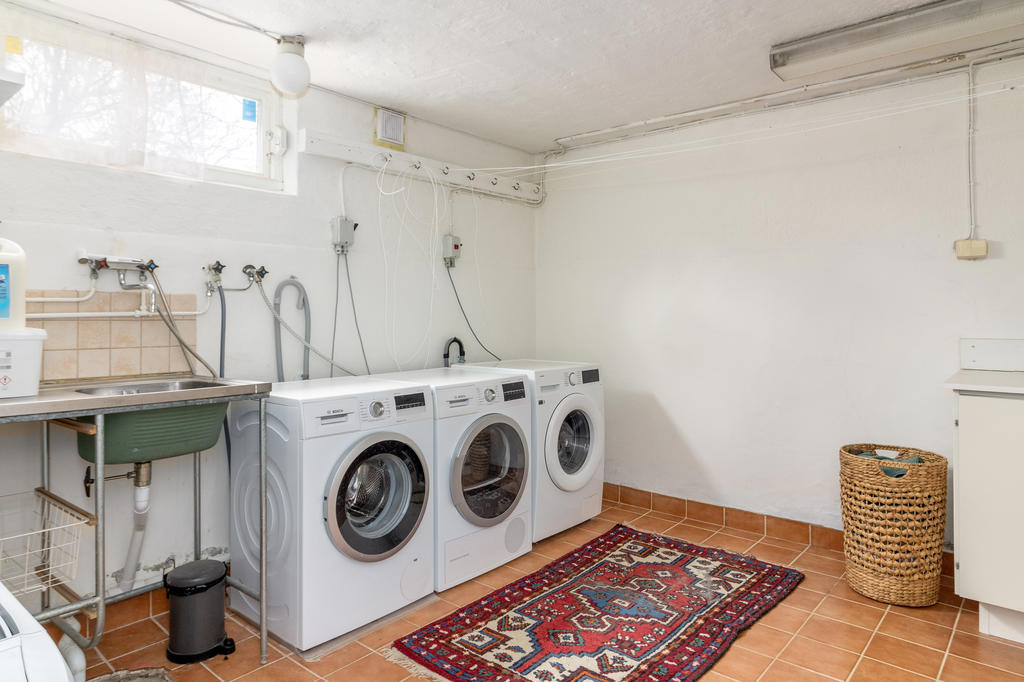 Det praktiska källarplanet har flera rymliga förrådsrum, hobbyrum för hemmagymmet, matkällare, stor tvättstuga och separat wc. På gaveln finns även en praktisk groventré varifrån jordkällaren nås.