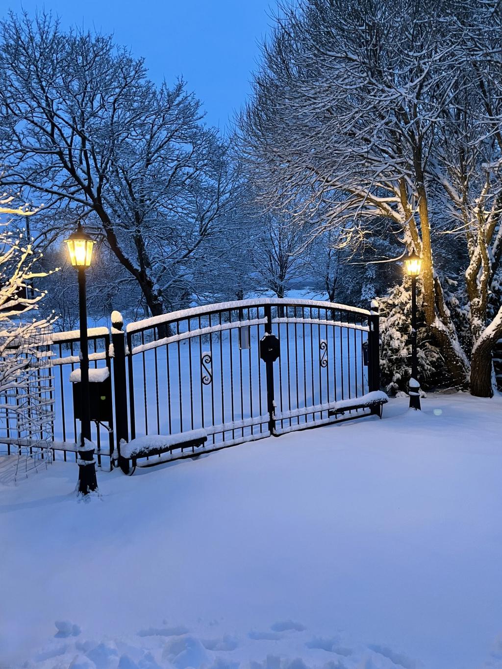 De smäckra svarta smidesgrindarna välkomnar in till en lummig och insynsskyddad oas. Den välplanerade trädgården har gott insynsskydd med höga vintergröna häckar, mängder av vårlökar och höga och låga perenner utformade för att blomma från tidig vår till sen höst. För den odlingsintresserade finns massor att upptäcka i fruktträdgården och köksträdgården, stora odlingsbänkar, ett rejält tunnelväxthus samt en murad jordkällare för förvaring av potatis, syltburkar och äppelvin. Den breda grusgången har utrymme för flera bilar och leder upp till en lummig oas med slingrande gångar mellan den gamla magasinsbyggnaden från 1700-talet, hönshuset och mangårdsbyggnaden. Intill farstukvisten finns en uteplats som rymmer både släkt och vänner under midsommarfester och kräftskivor. Här njuter man av utsikt över trädgården och kvällssolen som sänker sig över fältet intill.