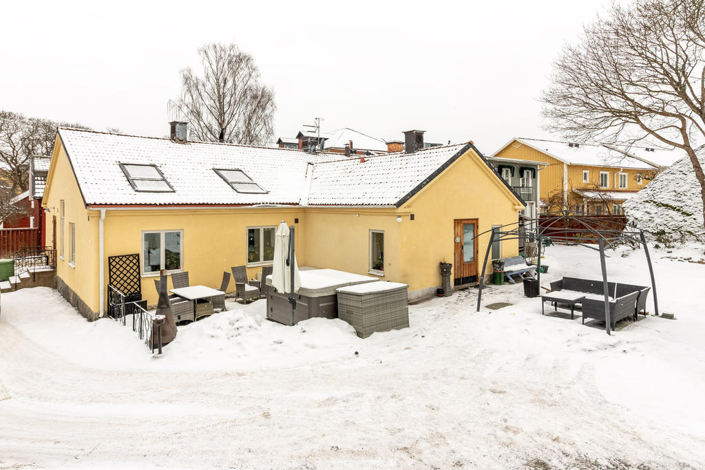 Huset har fjärrvärme, är fiberanslutet och har friköpt tomt om 1 003 kvm.