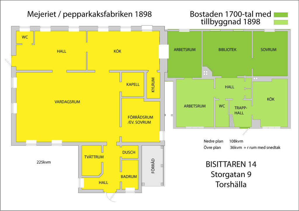 Känn historiens vingslag och njut av allt det vackra som tre sekel har att erbjuda. Ägarlängden vittnar om att grunden till den vackra grågröna längan utmed Storgatan anlades redan på 1700-talet. Under 1800-talets slut växte 1700-talshuset och det toppmoderna andelsmejeriet byggdes intill.