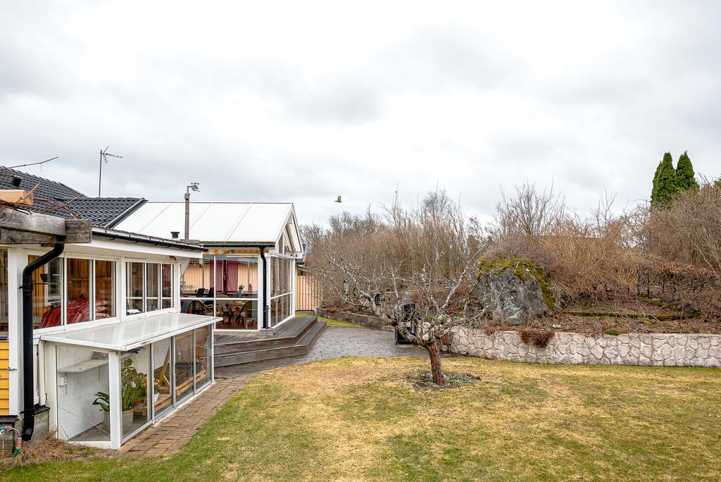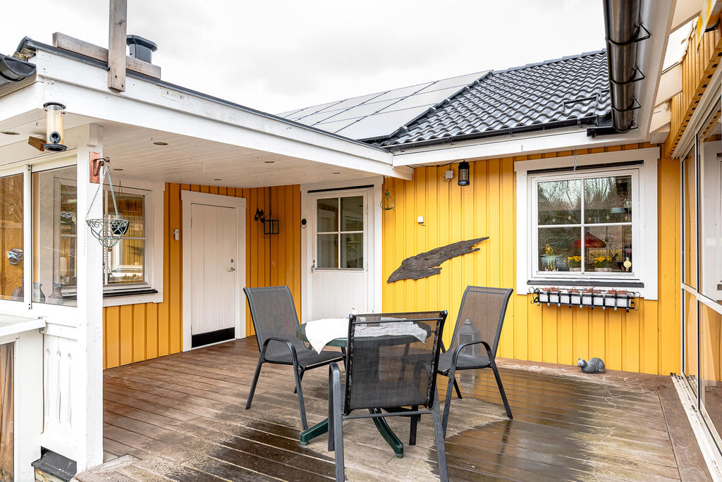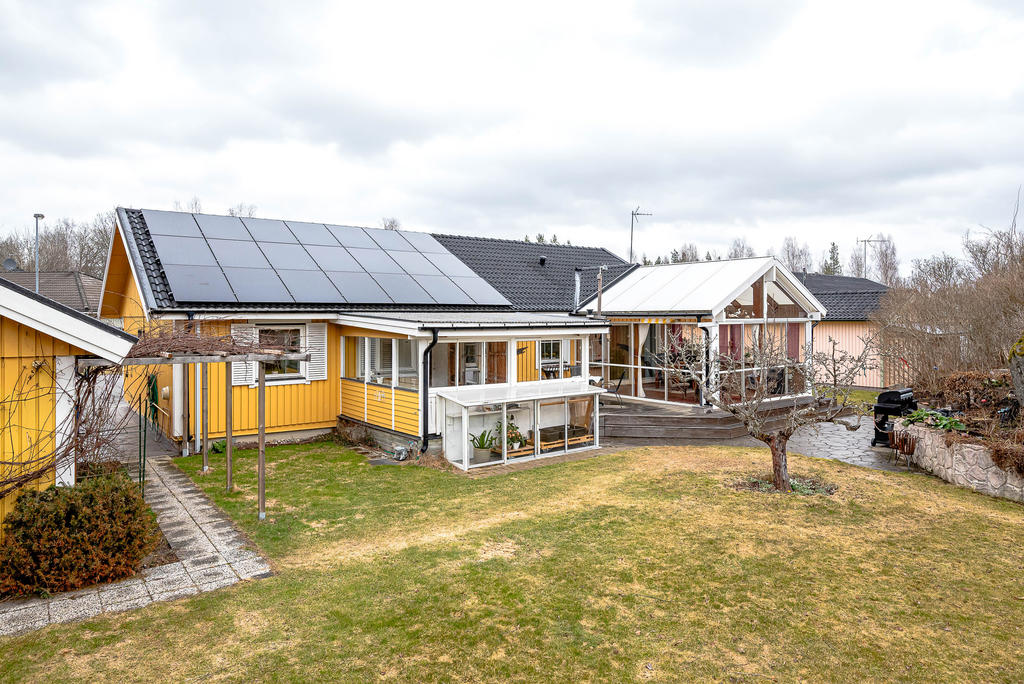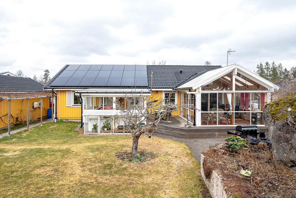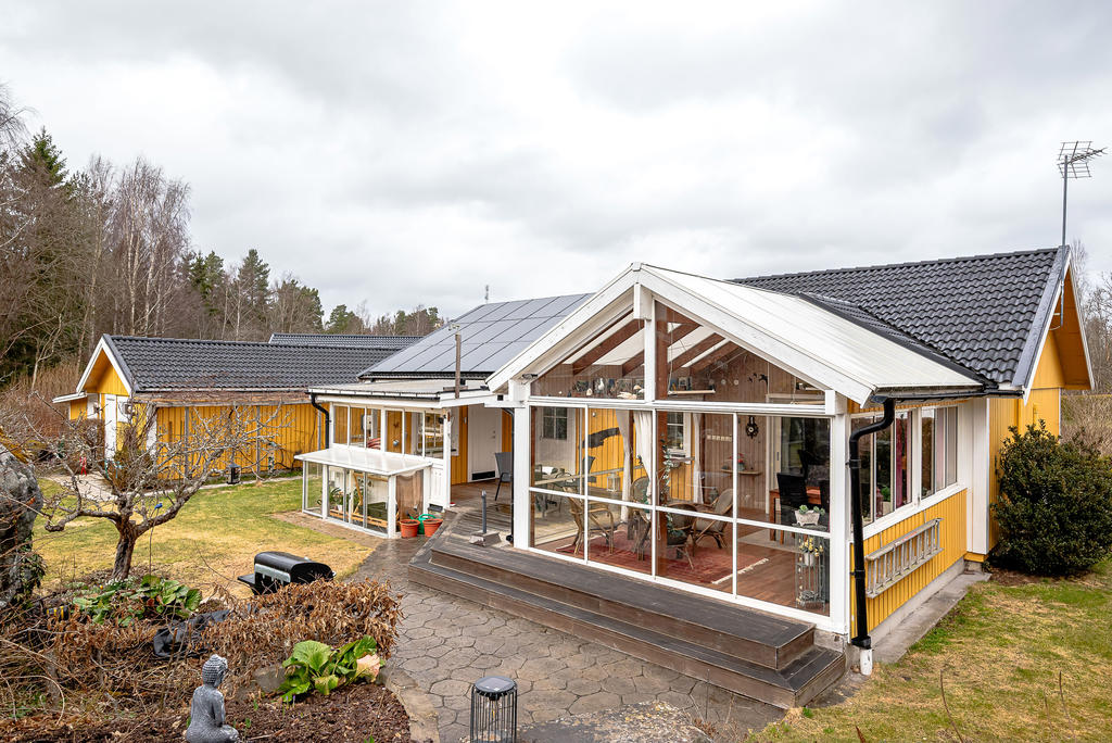 Trivsamt enplanshus med solceller, bergvärme och stort inglasat uterum i populära Lasstorp