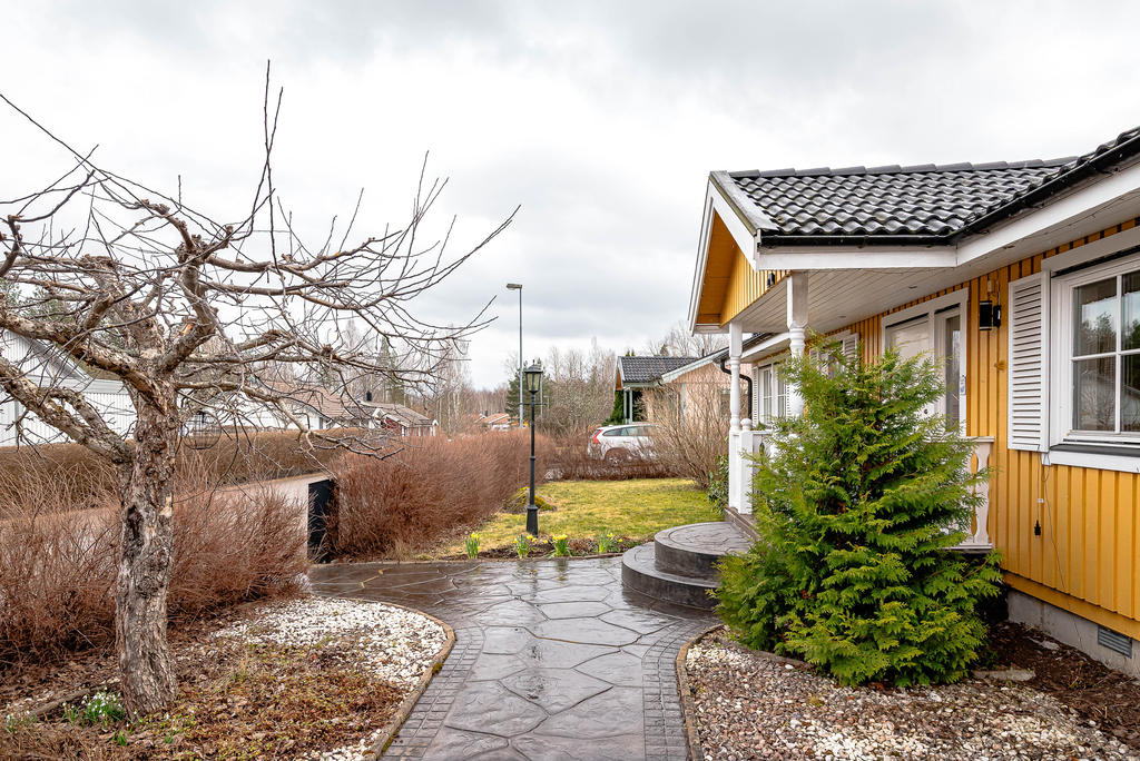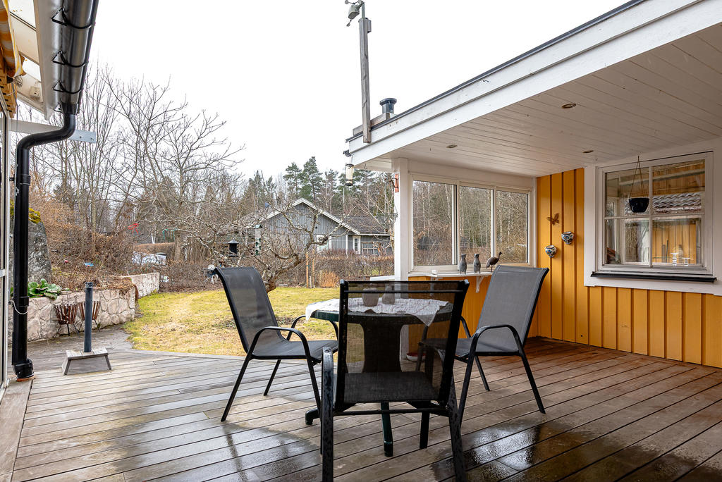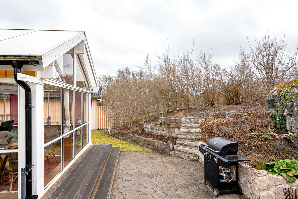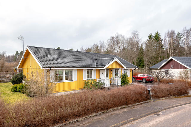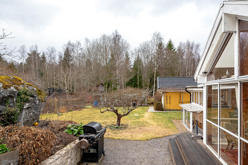 Trivsamt enplanshus med solceller, bergvärme och stort inglasat uterum i populära Lasstorp