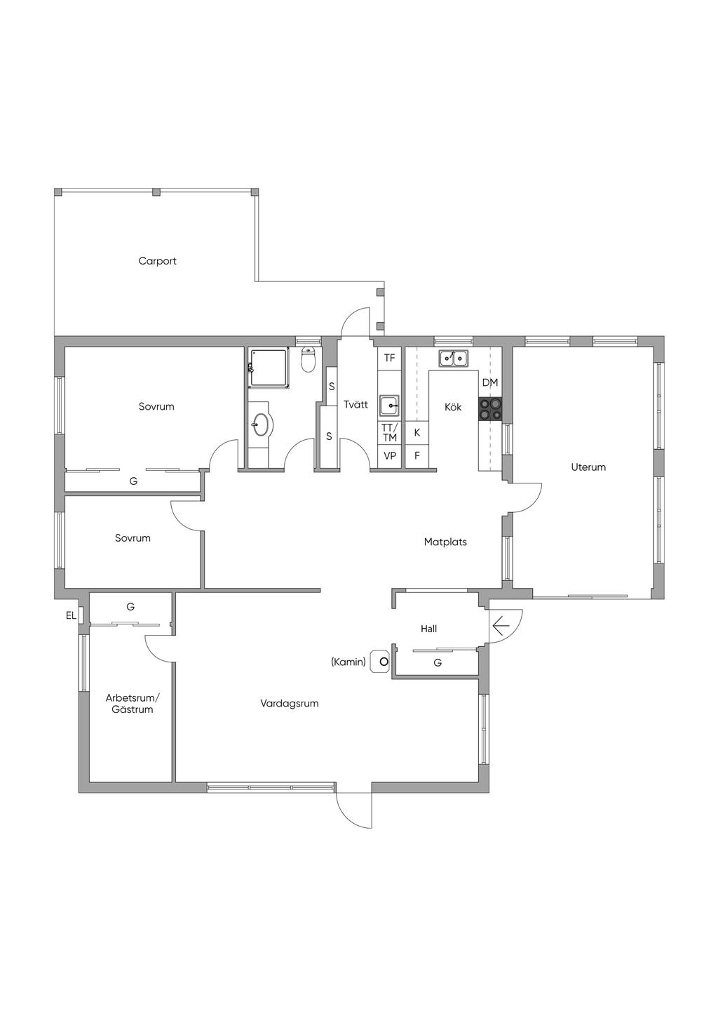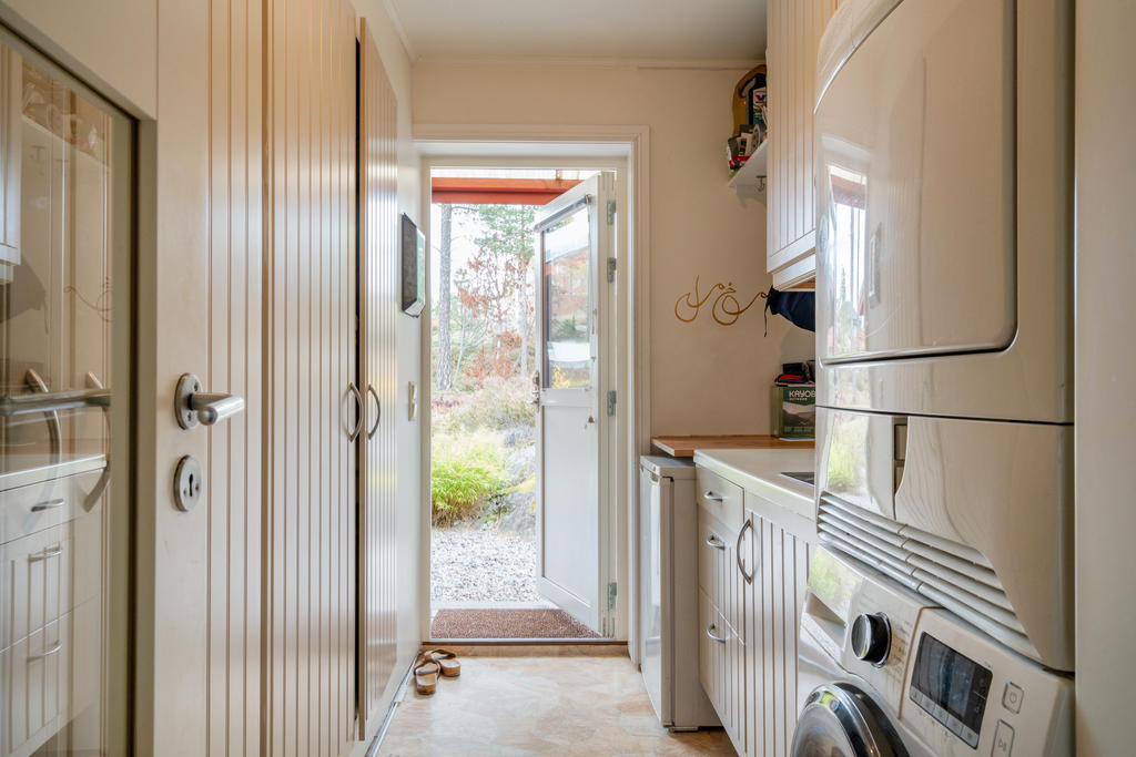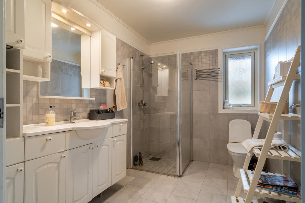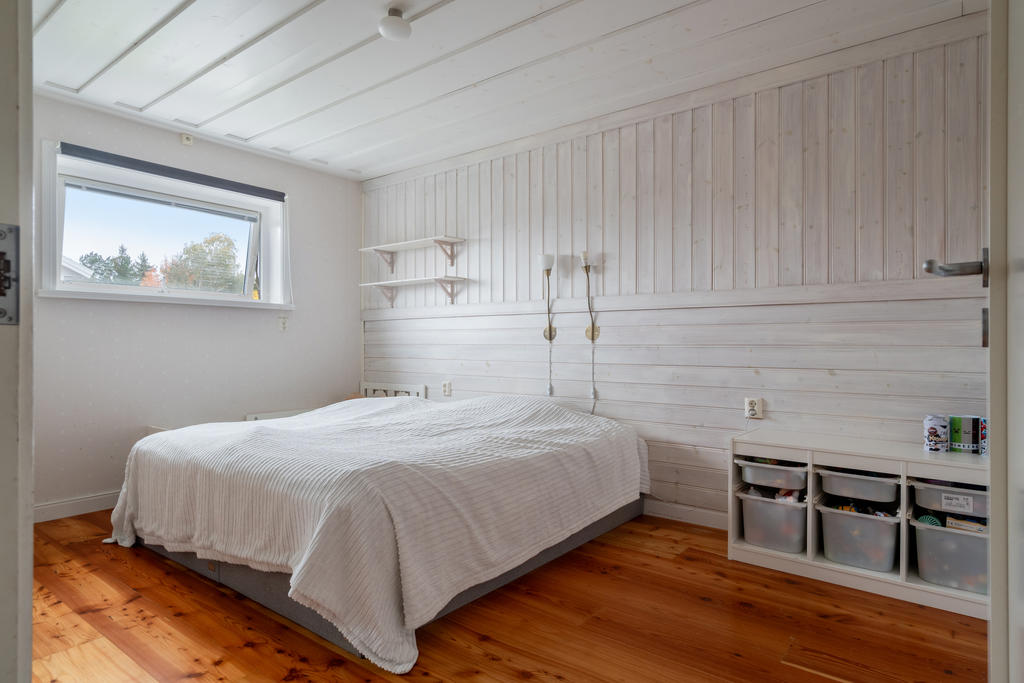 Huset erbjuder tre sovrum i olika storlekar, vilket ger flexibilitet för både barnfamiljen och paret som önskar extra arbets- eller gästrum. Därtill finns ett helkaklat badrum samt en separat tvättstuga med groventré.